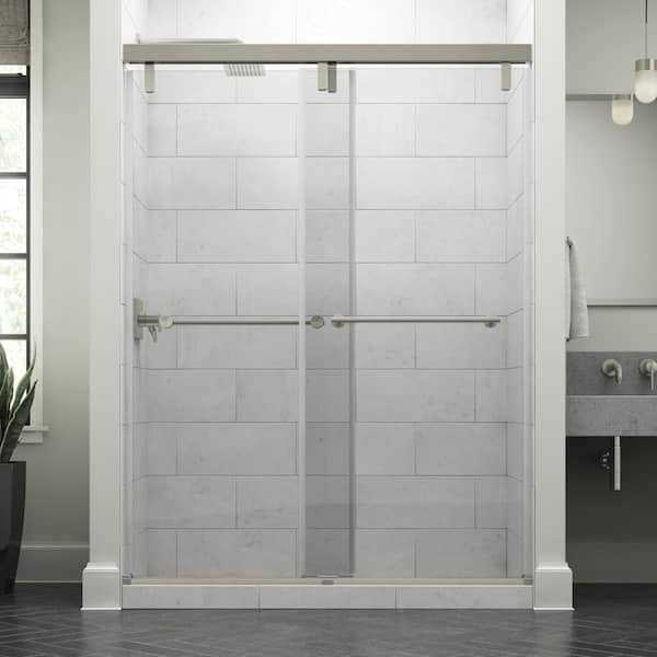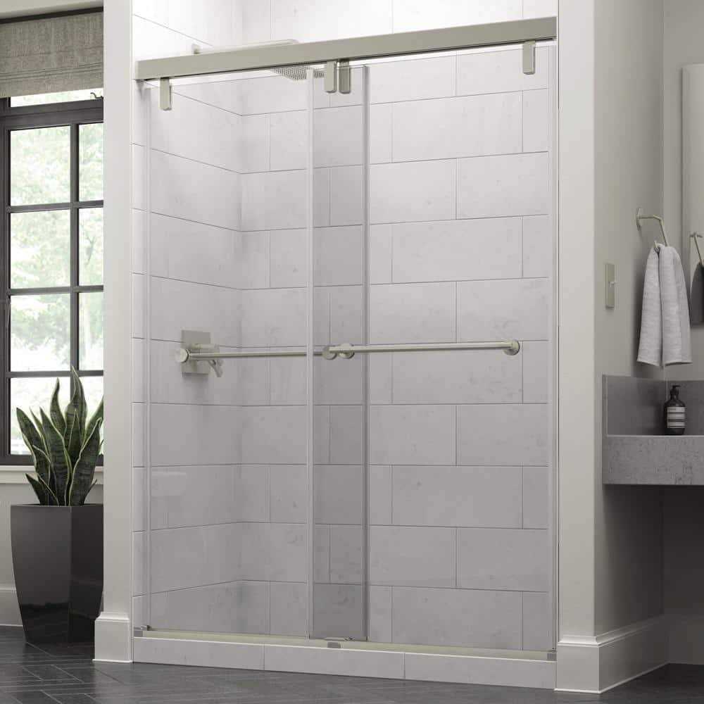 Delta Mod 60 in. x 71-1/2 in. Soft-Close Frameless Sliding Shower Door in Nickel with 3/8 in. Tempered Clear Glass