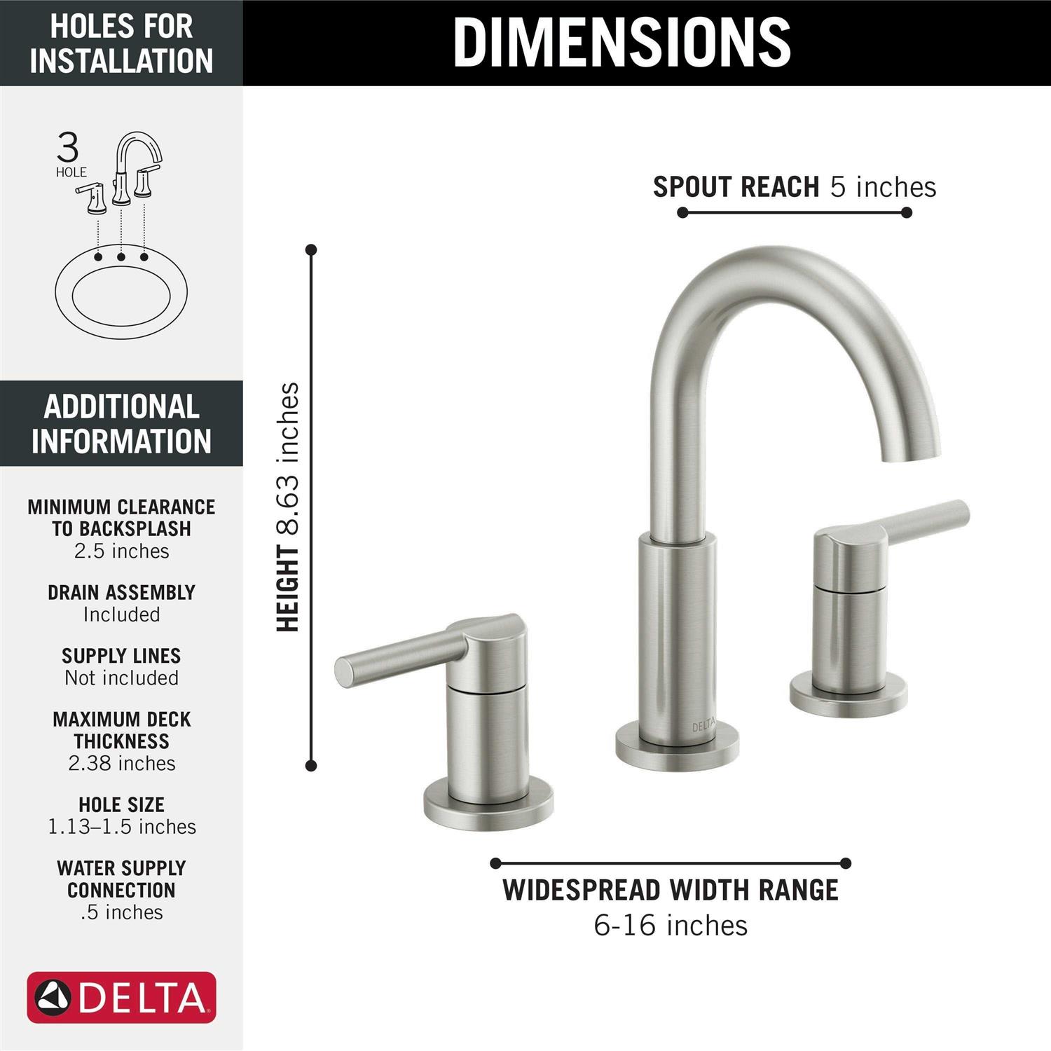 Delta Nicoli Two Handle Widespread Bathroom Faucet 35749LF Stainless