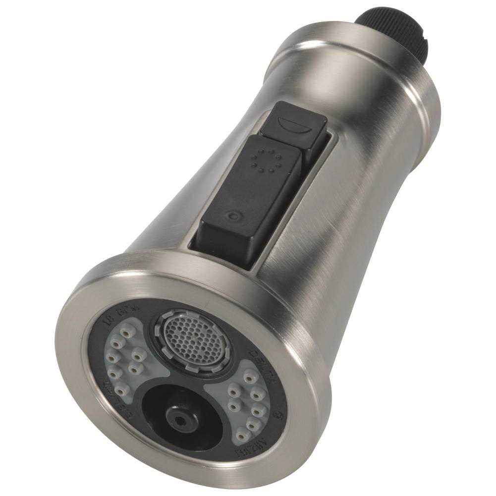 The Wand Assembly – ShieldSpray is made from premium materials, this item offers great function and value for your home. Wand assembly For use with kitchen faucet Key Features & Innovations Sheild Spray Technology Delta ShieldSpray Technology cleans with laser-like precision while containing mess and splatter. A concentrated jet within a protective sphere of water powers away stubborn messes with an average of 90% less splatter than a standard spray, so you can spend less time soaking, scrubbing and shirt swapping. Magnatite Technology Delta MagnaTite Docking uses a powerful integrated magnet to snap your faucet spray wand precisely into place and hold it there so it stays docked when not in use and doesn’t droop over time. Select Delta In2ition Two-in-One Shower Heads are equipped with MagnaTite Docking for easy, smooth docking every time. The firm hold of the magnet keeps your hand shower secure, but comes free with a gentle tug to give you complete flexibility. Touch Clean Technology Easily wipe away calcium and lime build-up with the touch of a finger. Delta shower heads, hand showers and kitchen faucets with Touch-Clean Spray Holes make it easy to wipe away calcium and lime build-up with the touch of a finger. While other faucets may gather unsightly mineral build-up over time, the soft rubber spray holes of touch-clean faucets allow any mineral residue to simply be wiped away for an instantly refreshed look – with no need for soaking or the aid of chemical cleaners. Spot-Shield Technology Delta SpotShield Technology helps to keep your faucet or shower cleaner, longer by resisting water spots and fingerprints. With the addition of antimicrobial protection of the finish, Spotshield finishes also help to reduce stain and odor causing microbial growth on the faucet finish. Available across a variety of finishes for kitchen faucets, bathroom faucets and shower heads. Brilliance Finishes No Tarnishing. No Discoloration. No Worries! Brilliance finishes, designed to not corrode, tarnish or discolor for a “like-new” look for life, are developed by embedding molecules deep into the faucet’s surface, creating a bond that is virtually indestructible. This process is known as Physical Vapor Deposition (PVD). Delta was the first manufacturer to offer this patented process that creates a bond that’s virtually indestructible with an incredibly reflective shine. Brilliance resists abrasions and discoloration better than traditional special finishes and, in many cases, better than chrome.In independent tests using the harshest drain cleaners, the Delta Brilliance drain retained its appearance, while its competitors did not come close. Tested with over 100 household cleaners, the abrasion resistance of the Brilliance finish can even withstand repeated scouring with steel wool. A Brilliance finish is guaranteed not to corrode, tarnish or discolor for as long as you own your home. It can even withstand prolonged exposure to harsh coastal environments.”