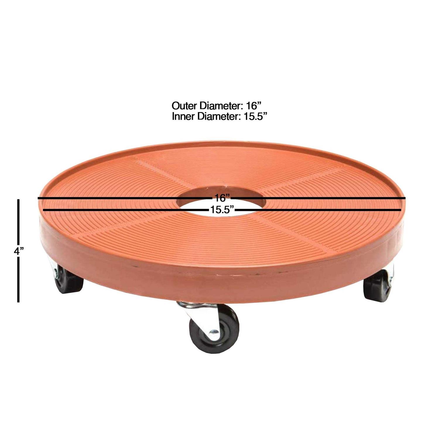 Now you can easily move and rotate heavy plants with this Plant Dolly by DeVault.Product Details Helps you to move large plants indoors and outdoors with ease The sturdy polyethylene base construction holds and moves up to 500 lbs. Made with durable steel casters with rubber wheels Has a 16-inch diameter and a 4-inch height Protects surfaces from scratches, stains and other water related damage DeVault has designed this plant dolly with steel swivel casters, rubber wheels, and a 16-inch diameter. The purpose of it is to help you be able to move or rotate large plants safely and with ease. Constructed with quality materials, this polyethylene base, weather resistant plant dolly will not deteriorate in harsh weather conditions and will last for years to come. Accommodates planters up to 500 lbs.