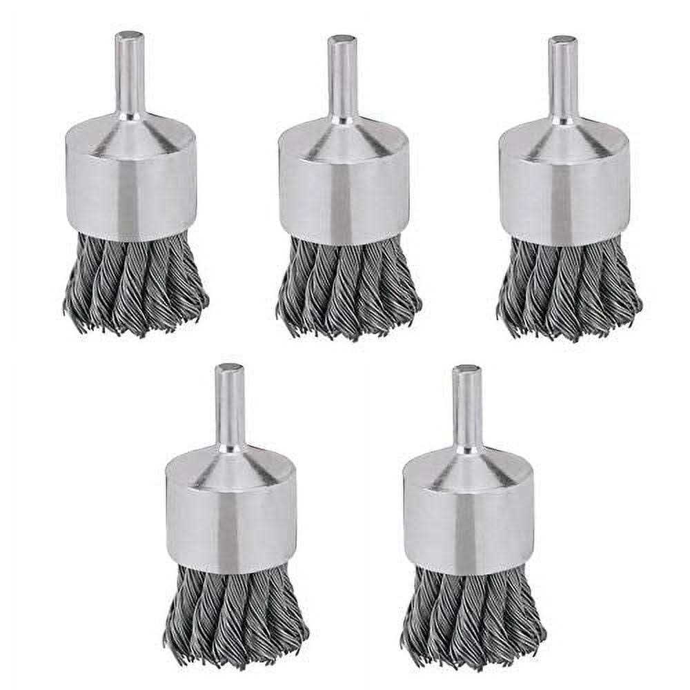 1″ x 1/4″, High Performance, Carbon, Knot Wire End Brush, .020″ Wire, Highly Specified Wire Grades Are Constructed With Internal Holding Plate To Ensure Consistency & Safety, Even Balance Which Provides Smooth Performance, Wire Is 100% Inspected To Meet Demanding Quality Specifications, 1/4″ Stem Arbor Size, Maximum Speed Is 20,000 RPM, Knotted Wire Is For Heavy Material Removal, Crimped Wire Provides Flexibility For Light Removal Of Rust & Paint, General Cleaning. Additional discounts apply for this item when purchased as Bulk.