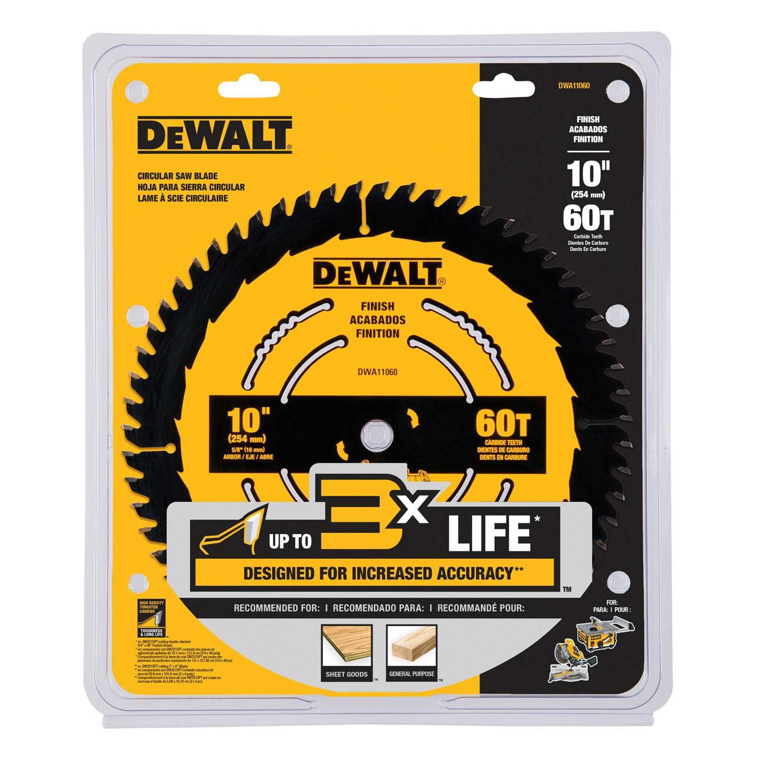 DEWALT Saw Blades are ideal for any wood-cutting application. The exclusive, patent-pending ToughTrack tooth design, on our framing and ripping blades, is engineered to deliver straight, accurate cuts over the life of the blade. Patented Body Slots reduce vibration, which works with the blade’s thin kerf design to deliver exceptional user feel. High-Density Tungsten Carbide teeth are tough, wear-resistant, and provide long life. The reinforced shoulder is designed for strength and durability by providing impact resistance, especially in nail-embedded wood. These blades come with ToughCoat anti-stick coating to reduce friction and gumming. Optimized for use on both corded and cordless circular saws.