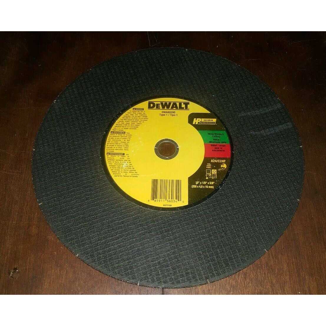 UPC : 00885911360340 SKU : 241469 Model : DWA8029D10″ x 1/8″ x 5/8″, Turbo Cut-Off Wheel, Combination Of Aluminum Oxide & Silicon Carbide Grain, Designed For Metal & Concrete/Masonry Cutting. Country : CA