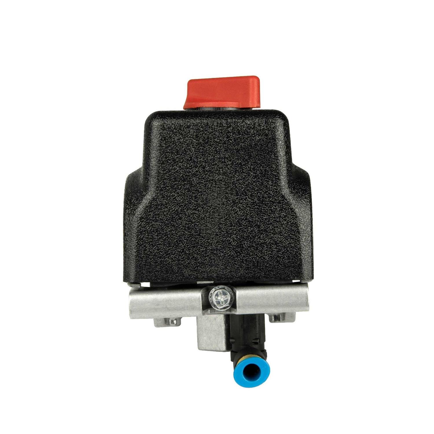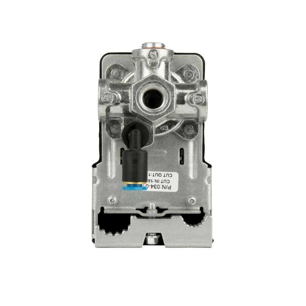 The DEWALT 175 PSI pressure switch DXCM034-0199 is part of the large line of genuine replacement parts. A pressure switch regulates air pressure in the compressor. Replace a pressure switch with a new pressure switch if the compressor motor is cutting out or not turning on at the proper PSI. This pressure switch is factory preset for 145 PSI kick-on and 175 PSI kick-off. Factory preset of the pressure switch is for 145 PSI kick-on; 175 PSI kick-off. 4 port switch with bleeder. 1/4 in NPT ports on the 175 PSI pressure switch. 1/4 in OD tube bleeder valve on the 175 PSI pressure switch. Use on any 175 PSI max air compressor.