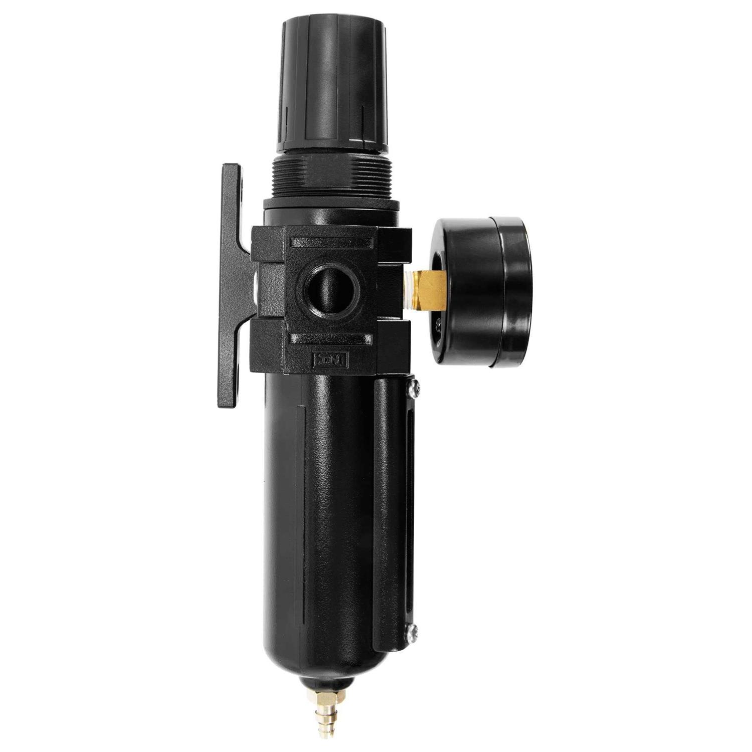 - Regulator lubricator with easy to read pressure gauge for convenience