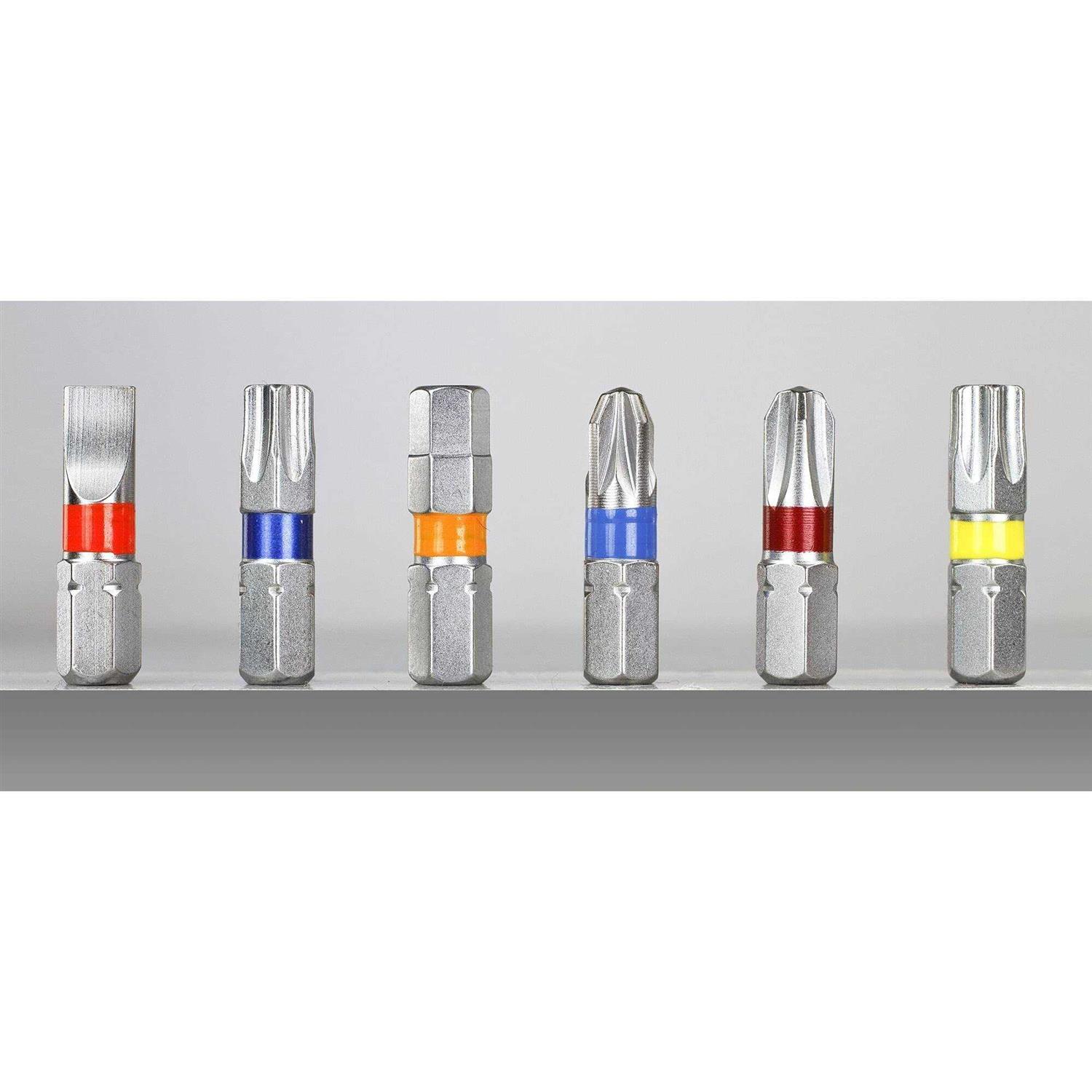 3 x DeWalt Screwdriver Bit Set 32 PieceThe DEWALT 32 Piece Assorted Screw Bit Accessory Set with magnetic bit tip holder is ideal for cordless impact drivers and drills and accepts standard 1/4in hex shank accessories. The bits have been constructed from S2 grade steel for improved quality and durability. The set contains the most commonly used bits for a wide range of applications. The magnetic bit tip holder ensures the smooth fastening of screws for improved fastener stability.n–Supplied with 25mm: 2 x PZ1, 7 x PZ2, 2 x PZ3, PH1, 6 x PH2, 2 x PH3, SL3, SL4, SL5, SL6.5, T15, T20, T25, T27, T30, T40, Hex to 1/4in adapter, magnetic bit tip holder