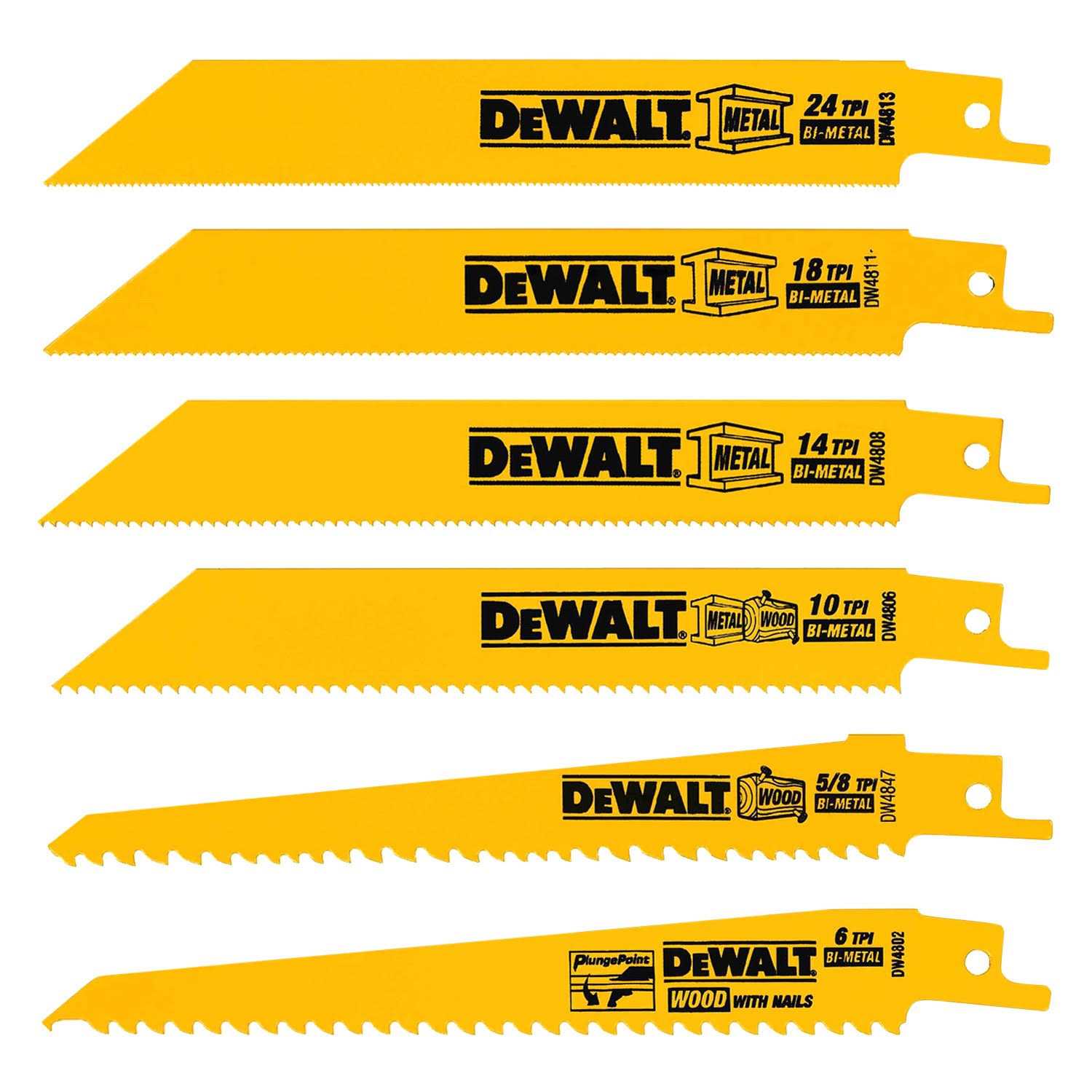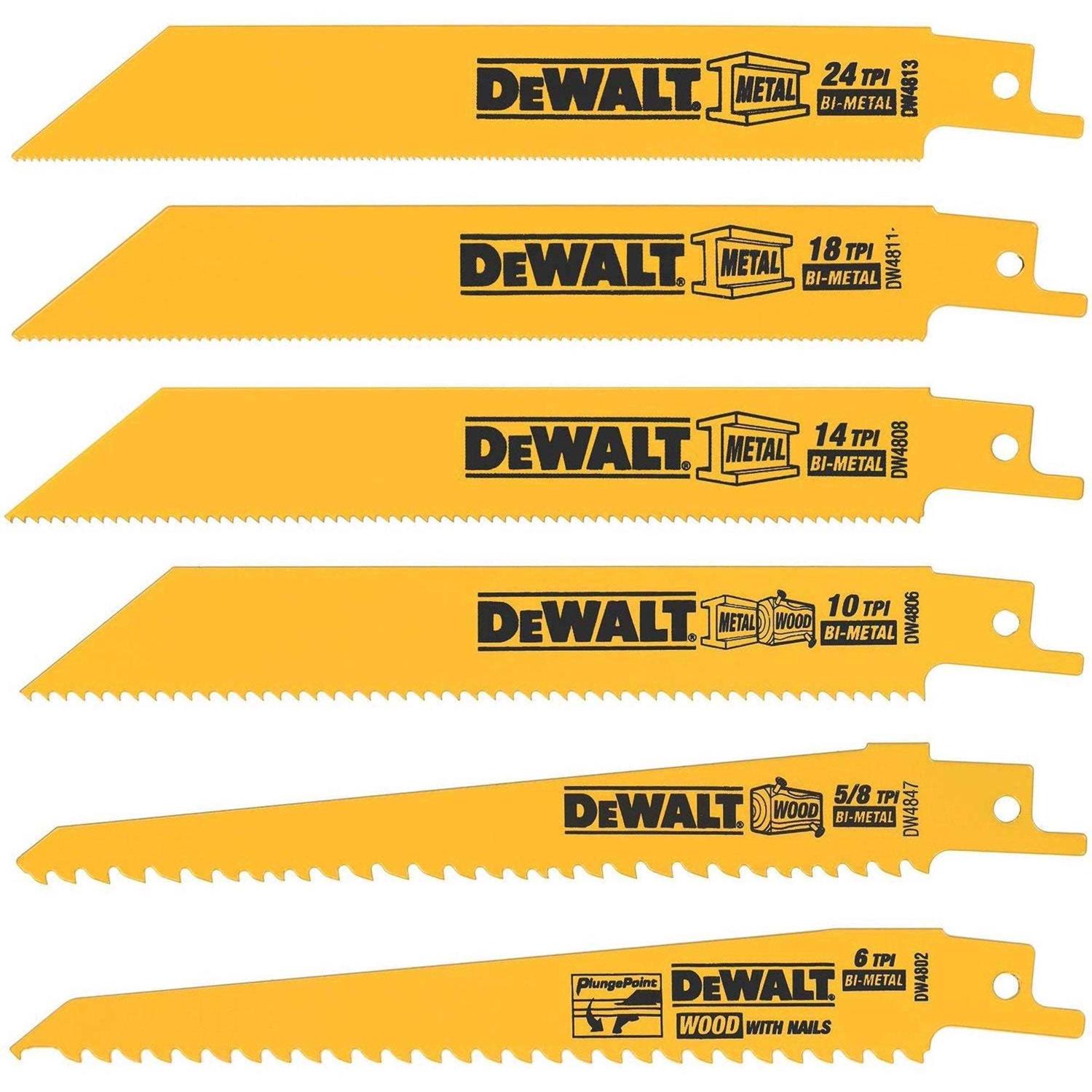 DeWalt DW4856 6 Piece Bi-Metal Reciprocating Saw Blade Set