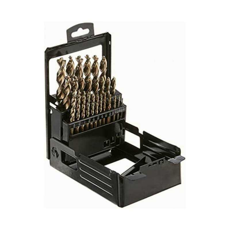 The DEWALT 29 Piece Pilot Point Drill Bit Set features a pilot point and split tip design that starts on contact and eliminates bit walking along for more control. Designed for maximum speed and life in stainless steel and other hard metals. Commonly used for drilling into stainless steel, drilling into angle iron, I-Beams, and other similar metals.