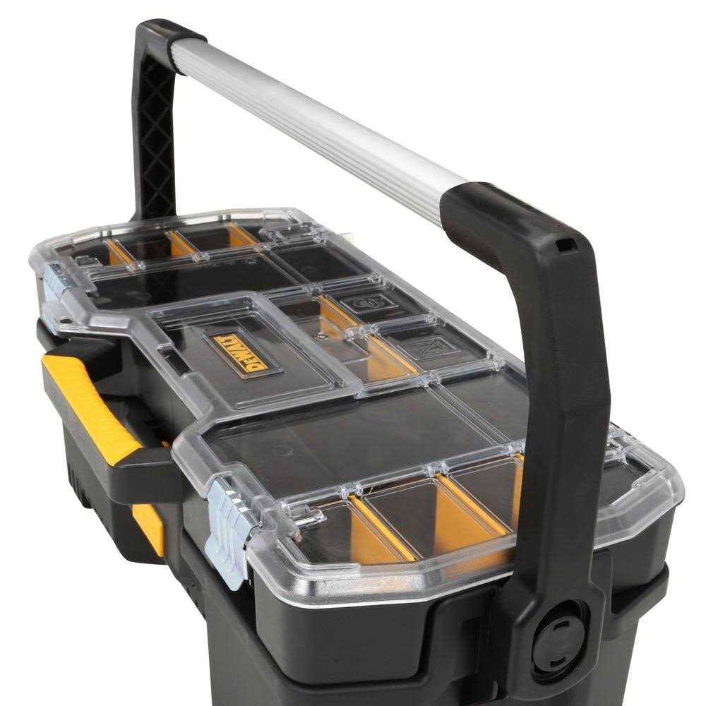 The DEWALT DWST24075 Tote with Removable Organizer Case has a top case organizer with an integrated carry handle for small parts. It has a long metal carry handle for easy grip and carrying of the tote. It has a durable structure and heavy-duty design. The front push-button is designed for easy detaching/attaching of the case to the tote unit. Ideal for use by Mobile Mechanics, Carpenters and Electricians.