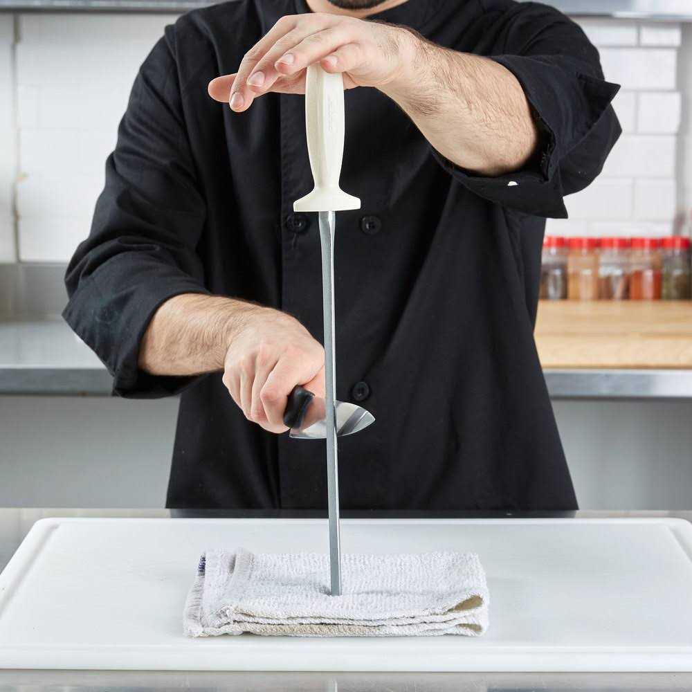 Keep your knives sharp and safe to use with this Dexter-Russell 07633 Sani-Safe 12″ oval diamond knife sharpening steel! The blade features an ultra-fine 100% diamond coating to simultaneously hone and realign a knife’s edge. This makes the sharpening steel perfect for minor sharpening and daily upkeep or restoring your knife’s factory edge. As part of the Dexter-Russell Sani-Safe line, this product features a slip-resistant, easy-to-clean polypropylene handle that is able to withstand temperatures of up to 250 degrees Fahrenheit. A finger guard is also built in for increased safety. Each blade is individually ground and honed for extra strength. To clean and avoid dirt build up, wash the steel regularly in hot, sudsy water and dry it immediately. You can also sterilize the polypropylene handle by placing it in boiling water. Use this sharpening steel to keep your establishment working at peak efficiency and safety!