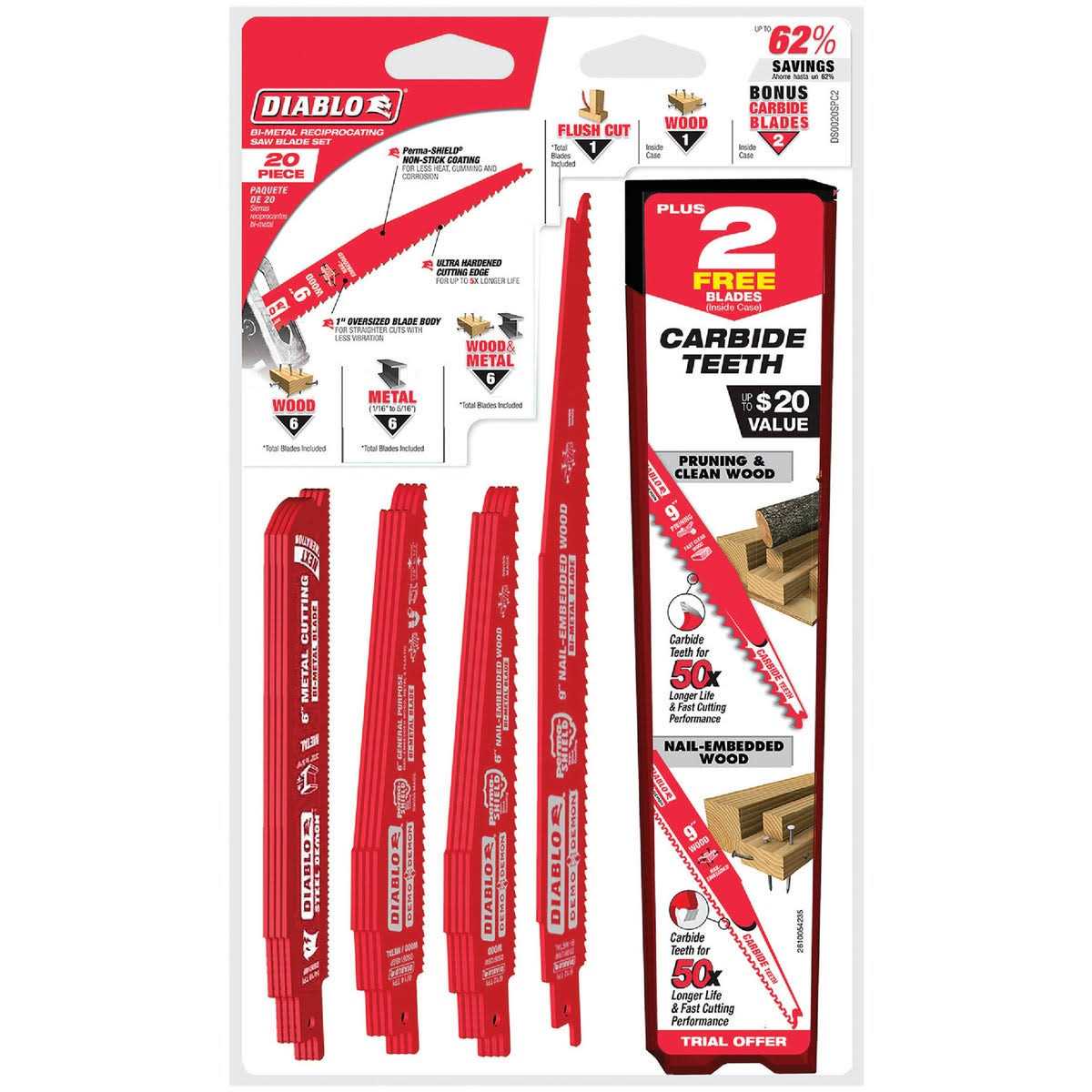 Diablo 20-Piece Bi-Metal Reciprocating Saw Blade Set DS0020SPC2