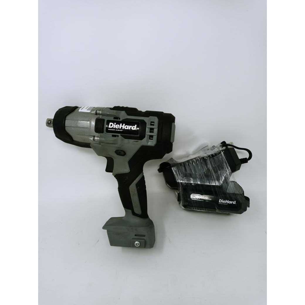 The DieHard 1/2″ Cordless Impact Wrench has a max torque rating of 300 ft/lb and includes 2 variable speeds. This wrench includes a high-performance carbon brushed motor, as well as an LED light making this an excellent tool for both dark and tight places. Also included are both a 20v battery and fast charger. Product Features: Variable Speed Trigger No-Load Speed: 0-2200 RPM Impact Speed: 0-2300 BPM 1/2″ Square Chuck High-Performance Carbon Brushed Motor Nut Busting Torque 300 Ft-Lbs (407 N.m) Built-in LED light Belt Loop 20V 2.0Ah Lithium-ion battery included 20V Quick Battery Charger included Battery charges in approximately 1 hour