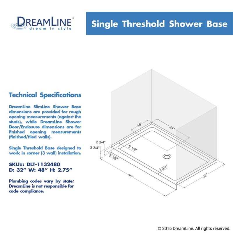 DreamLine 2.75 x 48 x 32 in. SlimLine Single Threshold Shower Base DLT-1132480
