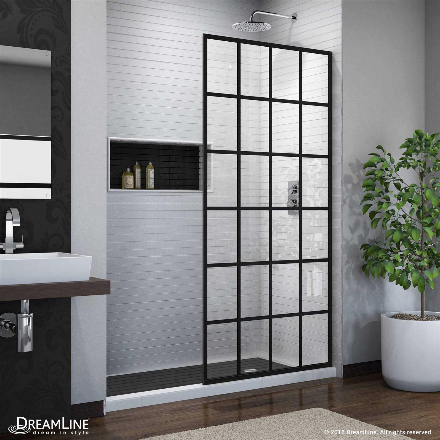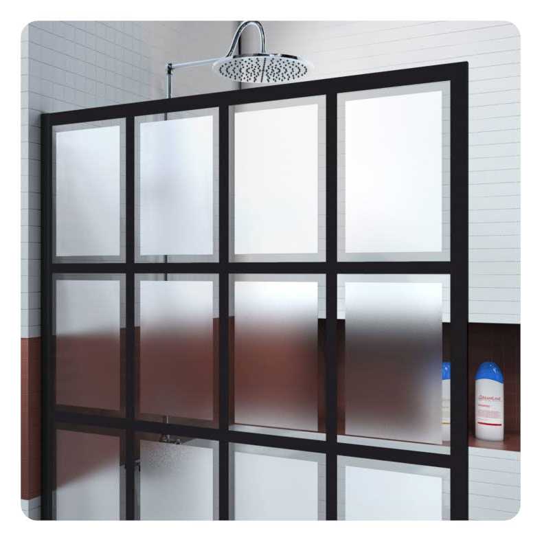 The stylish window pane design and black finish is bold and striking in any bathroom. The glass pattern is an application of black frosting offering a unique look without the metal framing for easy maintenance. DreamLines exclusive ClearMax water repellant and stain resistant glass coating adds superior protection from stains and is nearly maintenance-free. Expand the possibility for efficient use of space with the bright and open design of a doorless shower. Choose Dreamline for the ultimate solution to your shower project. Premium 3/8 in. 10mm thick ANSI certified tempered glass for an upscale look. Black frosting creates the window pane glass pattern for easy maintenance. Panel is attached to the wall using a 1 in. thick anodized aluminum U-channel. U-channel allows up to 1/2 in. adjustment for out-of-plumb uneven walls.