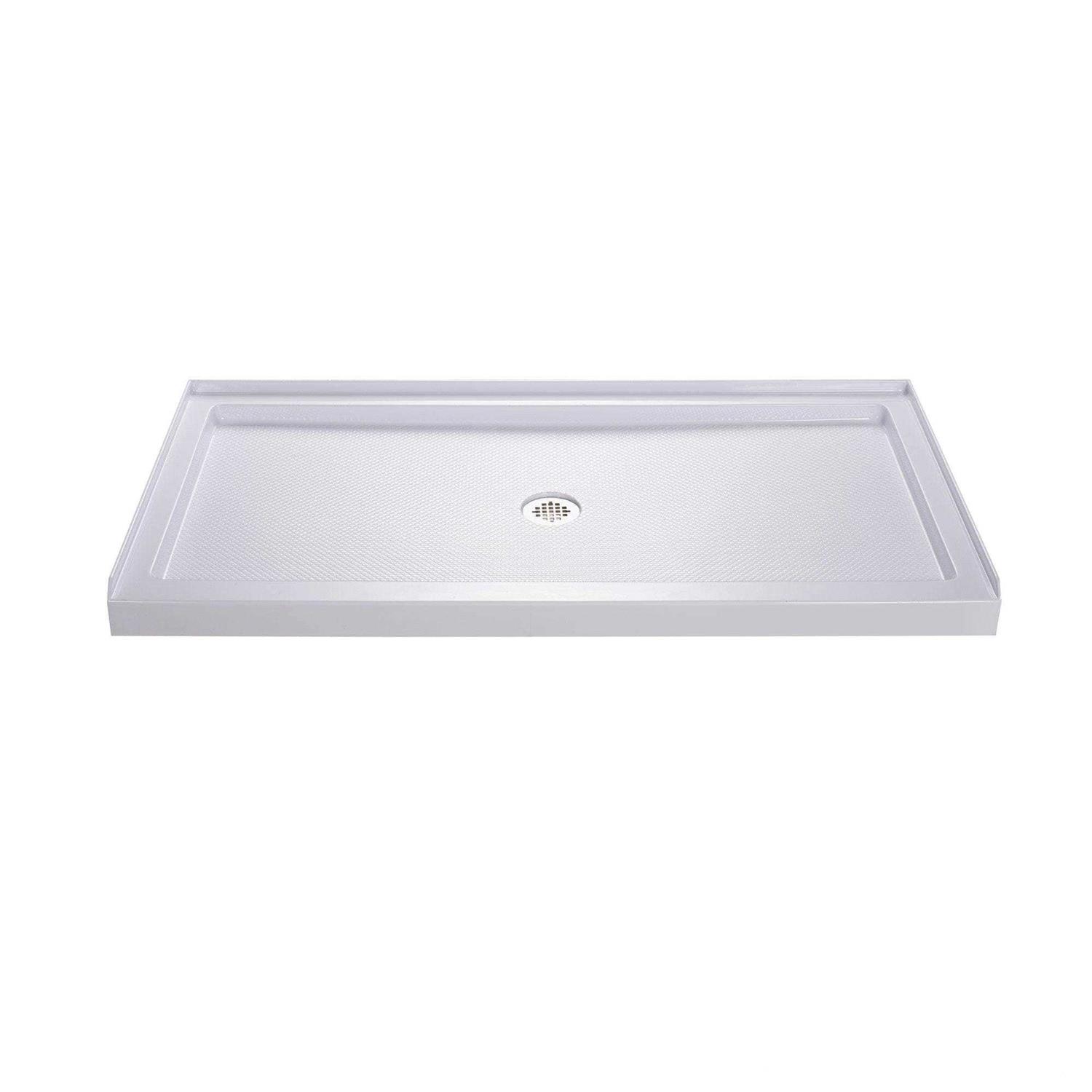 The DreamLine SlimLine single threshold shower base may be used in a custom shower project or combined with DreamLine Shower Doors for a complete shower installation or tub-to-shower replacement project. The modern shower bases (also referred to as shower receptors, shower trays or shower floors) have a low profile design for a clean polished look. DreamLine shower bases deliver a smart alternative to the time and cost involved with custom tile, with a product that is easy-to-install and an excellent value. Made of attractive high gloss Acrylic/ABS materials, the bases are fiberglass reinforced for durability. Each single threshold shower base comes standard with a slip-resistant textured floor pattern, 3-side integrated tile flanges and an opening ready for a standard compression fitting drain. DreamLine offers a collection of cUPC certified low profile shower bases. These shower trays are cUPC certified, which affirms they are in compliance with applicable American and Canadian codes and standards. NOTE DreamLine SlimLine Shower Base dimensions are provided for rough opening measurements (against the studs), while DreamLine Shower Enclosure dimensions are for finished opening measurements (finished/tiled walls). NOTE DreamLine shower bases will always be larger (approximately 2 in.) than the corresponding DreamLine shower enclosures/doors. Please, take this information under advisement when ordering your Shower Base and Shower Enclosure separately.