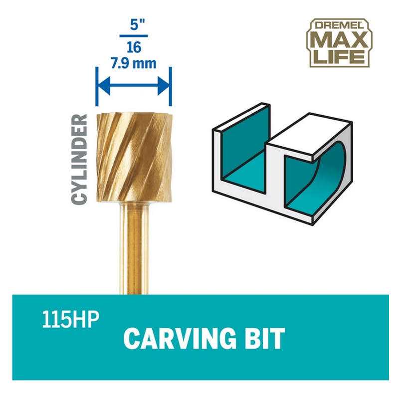 - The Max Life 115HP Carving Bit is coated in Titanium Nitride and is engineered to last 2X longer than the standard, non-coated Dremel 115 carving bit.