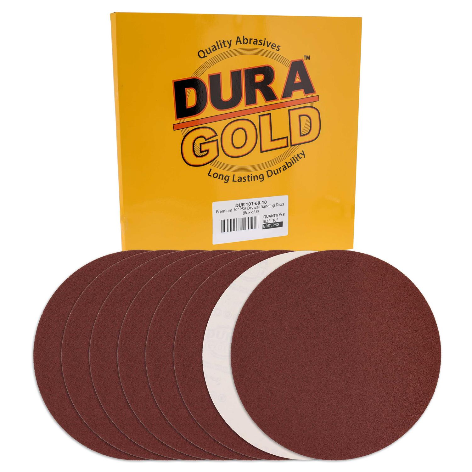 Dura-Gold Premium 10″ Sanding Discs Variety Pack Box – 60, 80, 120, 180, 240 Grit (2 Discs Each, 10 Total) – Sandpaper Discs with PSA Self Adhesive
