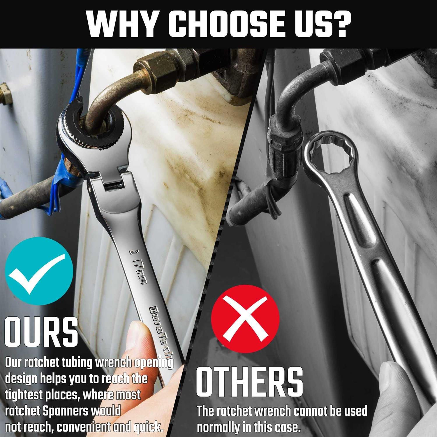DuraTech 6-Piece Ratcheting Wrench Set with Open Flex-Head, Metric Ratcheting Tubing Wrench Set, 10-17mm, 72-Tooth Gear, CR-V Steel, with Organizer