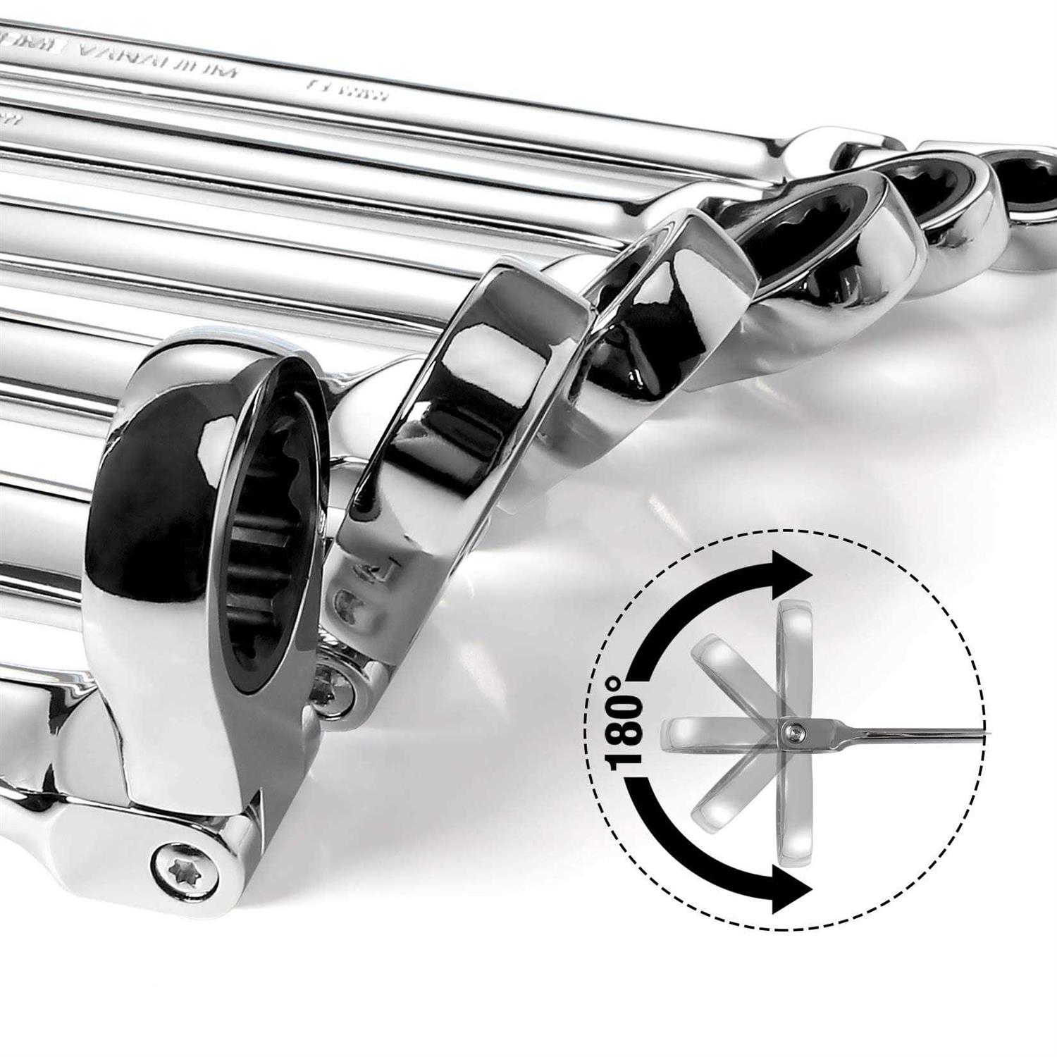 - 14*15mm Extra Long Flex-Head Ratcheting Wrench.