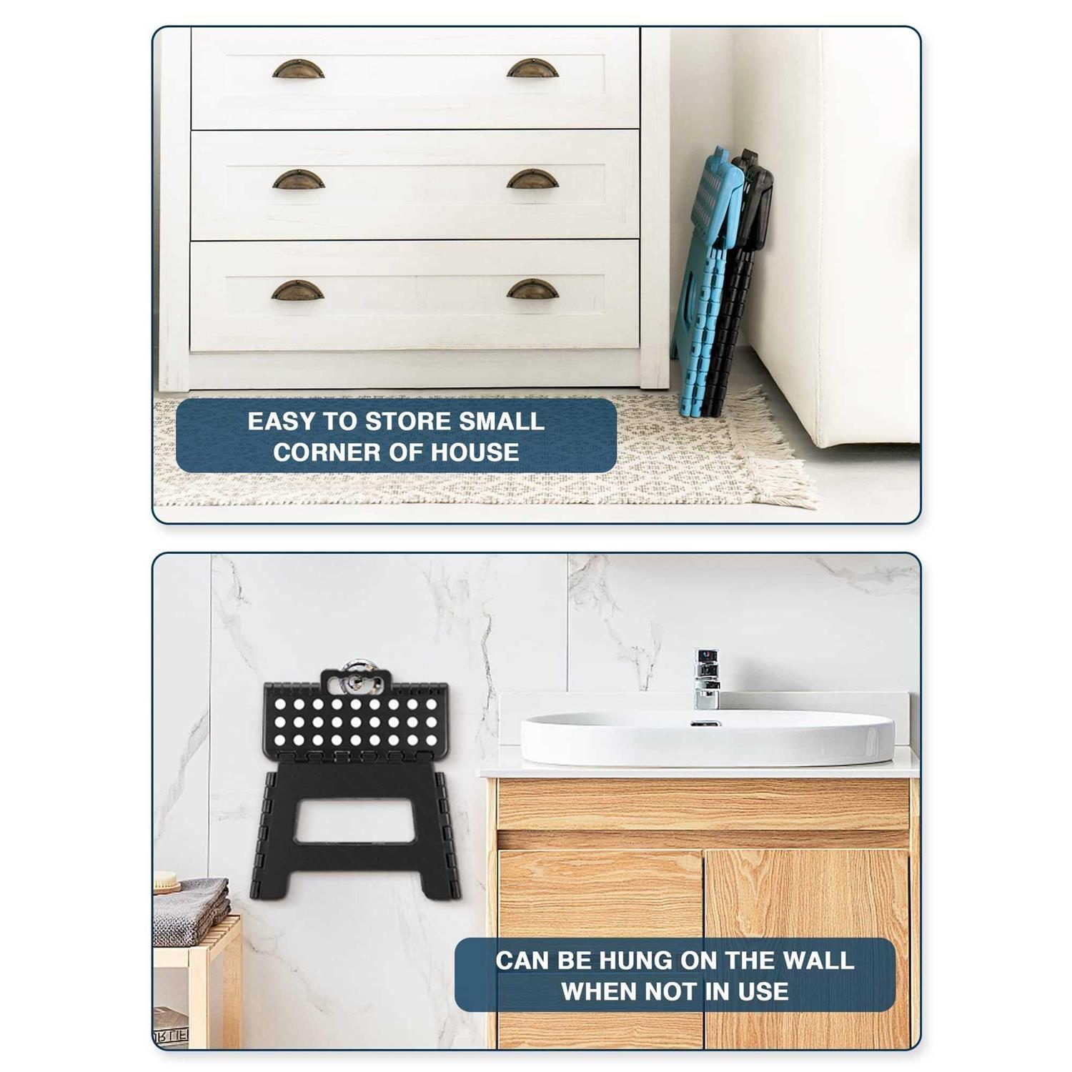 - Unique and grip-dot textured surface makes the folding step stool safe for everyone. Ideal for Adults, Children and Olders.