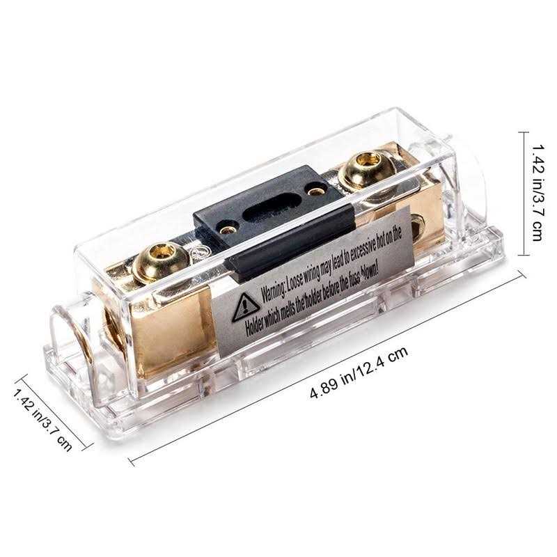 Include 1 ANL fuse holder and 2*200A ANL fuse. No mounted terminals need for making connection. Gold Plated conductivity. Flame-retardant and tranparant PC housing. Include 1 set of Hex ket wrench convenience for fixing the wire.