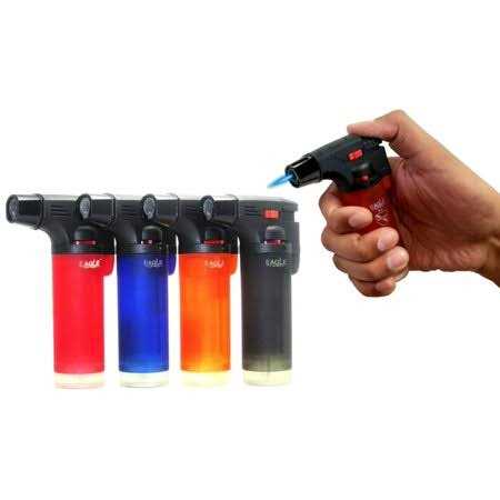 - 4 X Eagle Jet Torch Adjustable Flame Lighter. Approximately 4.5” tall. Refillable. Single torch. Switch the lock to “on” before use.