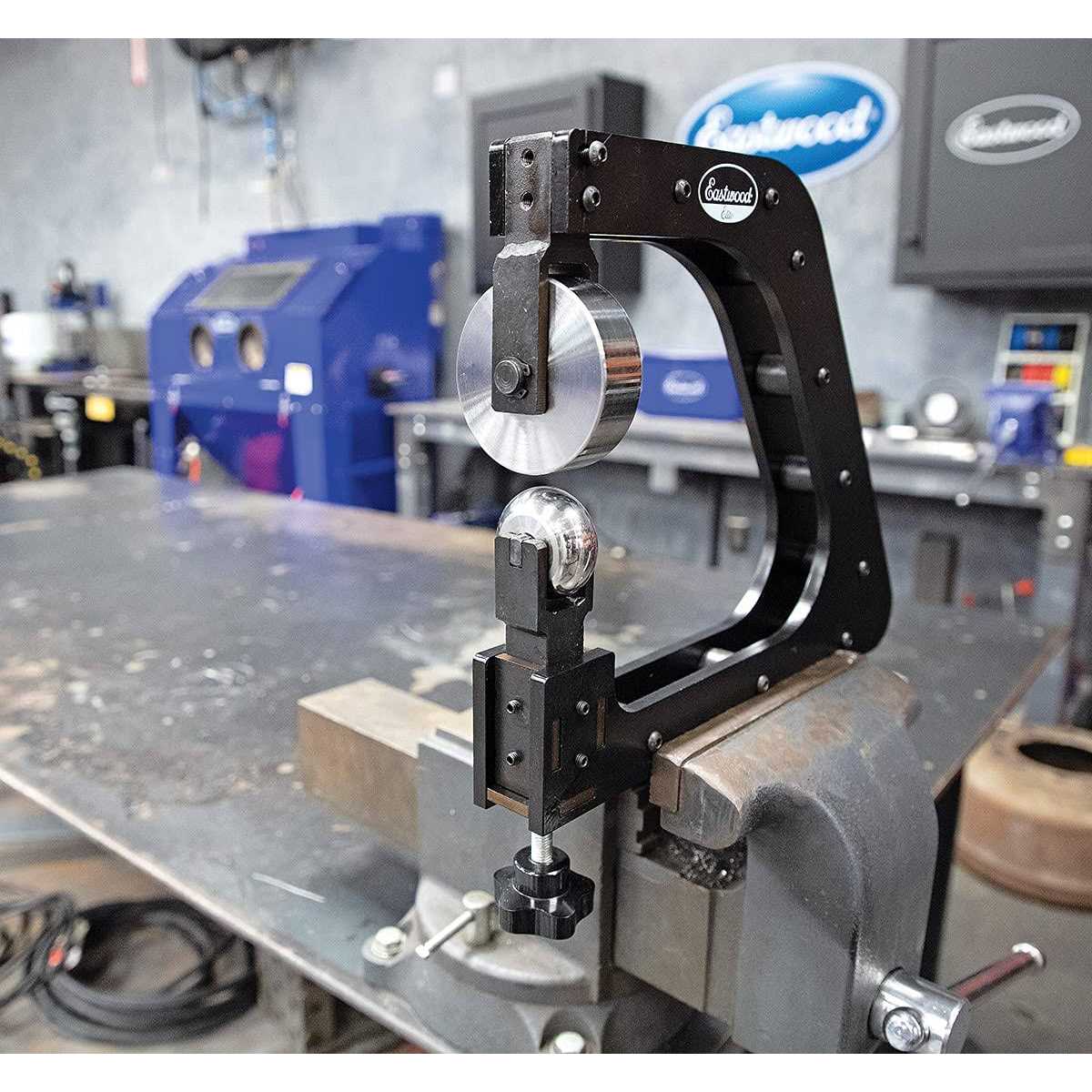 Fabricating compound curves in metal is easier than ever with Eastwood’s Elite Mini English Wheel. Whether you’re just getting started with an English wheel or simply need a space-saving unit for small projects, this wheel packs huge performance in a small package. Simply a smaller version of the classic English wheel, this unit allows you to fabricate intricate patch panels that may be too small for a larger wheel or dont require the expense of such a unit. Expand your metal forming skills and create patch panels correctly when you no longer have to try to accurately form a patch panel over your knee. Even if you already own a large wheel, many hobbyists and professionals find the need for a small unit and the benefits it provides.Your patch panels will weld much cleaner when truly formed by stretching rather than bending. When you begin welding that bent panel it will want to revert to its original flat shape, and you won’t get the results you need. A panel formed in an English wheel that is truly stretched into shape will tend to retain the shape during welding, resulting in a far better fitting, easier welding and cleaner repair.