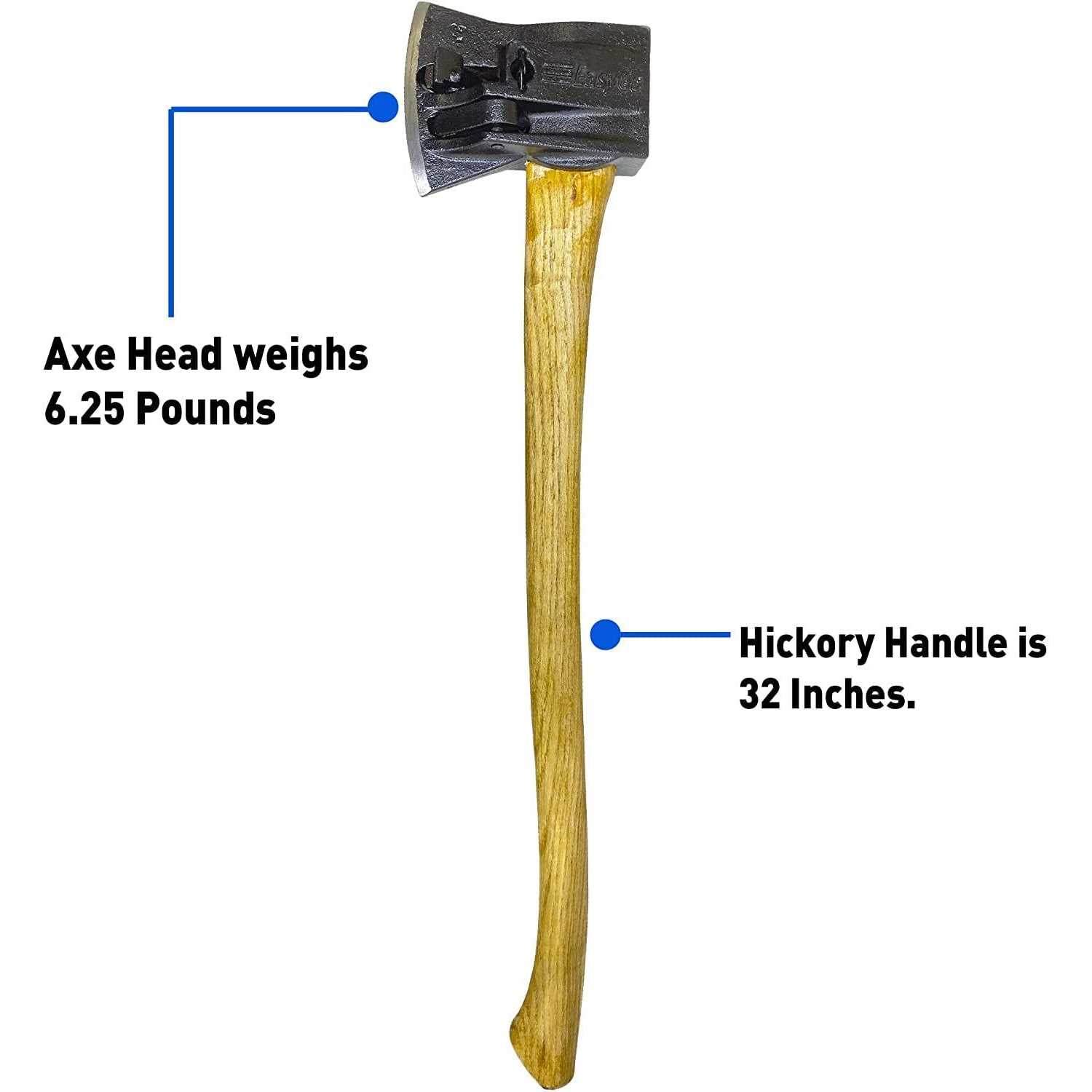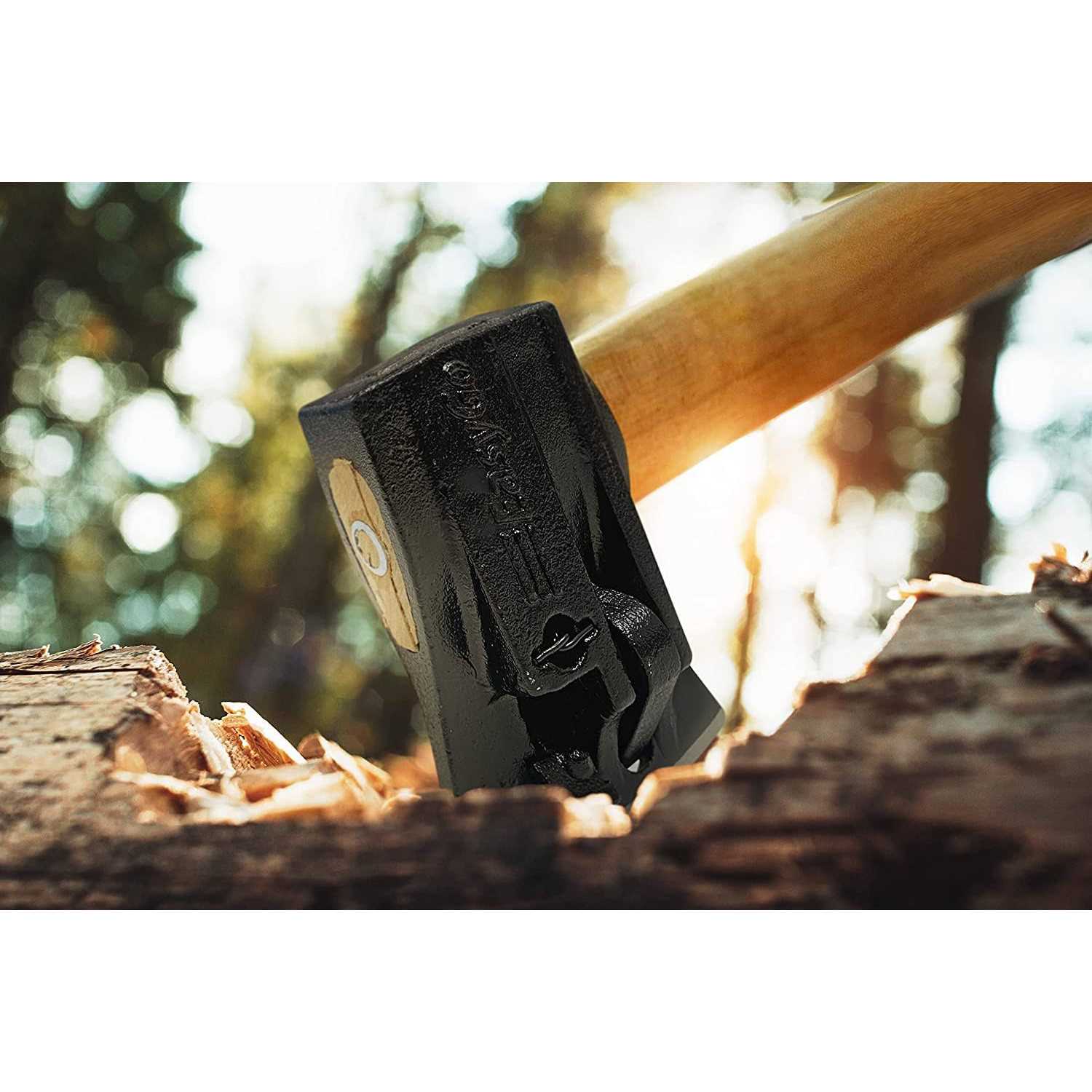 EasyGo Product Chopper Wooden Axe #1 Splitting Maul Powerful Log Action Spring Activated Levers Separate Wood 6.25#Cast Iron Head 32” Hickory