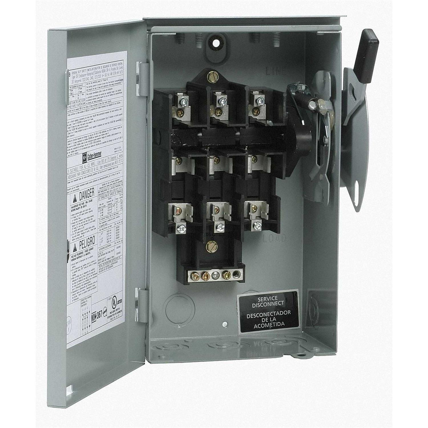 Surface/panel mountable switch features painted steel construction. It has visible double-break, quick-make and quick-break rotary blade mechanism for faster switching operation. Fusible switch with solid neutral, provides ample wire bending space provides for easier installation. It measures 5.73-Inch x 6.1-Inch x 6-Inch. This 3PST switch uses Class H cartridge fuse for providing protection to low-voltage electrical installation against short-circuit/overload current. It has mechanically interlocked cover that prevents internal device access during On position. It is perfect for residential and commercial applications. It has NEMA 1 rated indoor enclosure for safety. Switch is UL listed.