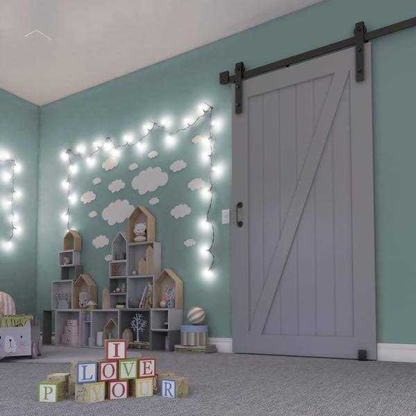 Barn door comes as a high demand product. In addition, the sliding space along the wall is perfect for leaving the ambiance with an elegant countryside feel. Saves space, it is easy to install and add a cozy detail to any home. While standard doors need a wide area to open and close, barn doors only require adequate wall space, meaning you can make maximum use of your square footage for furniture and decor and a perfect solution for dividing huge rooms. This door is pre-finished in grey and should not be stained in any way to prevent damage to the product. Made for interior use only.