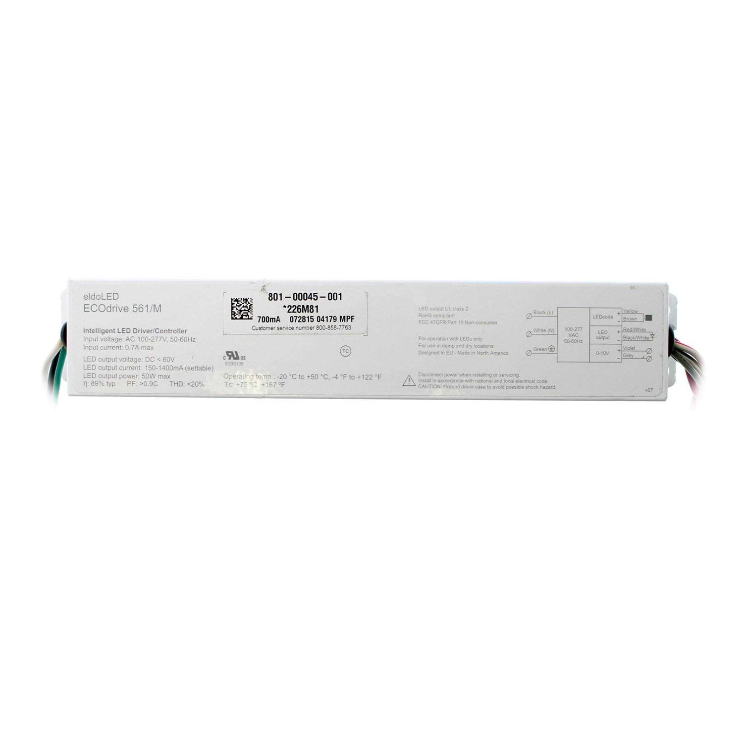 Intelligent LED Driver/ Controller 100-277V, 50/60Hz Input Current: 0.7A Max LED Output current: 150-1400mA eldoLED ECOdrive 561/M Intelligent LED Driver