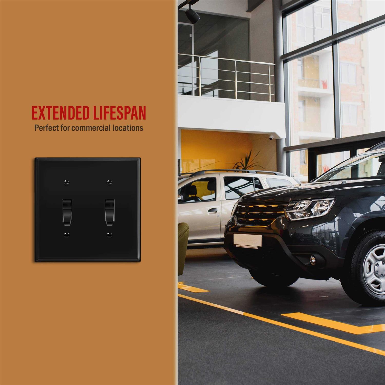 Enerlites Double Toggle Switch Cover, Two Gang Light Switch Wall Plate, 2-Gang, Unbreakable Polycarbonate Thermoplastic, UL Listed, 8812-bk, Black,