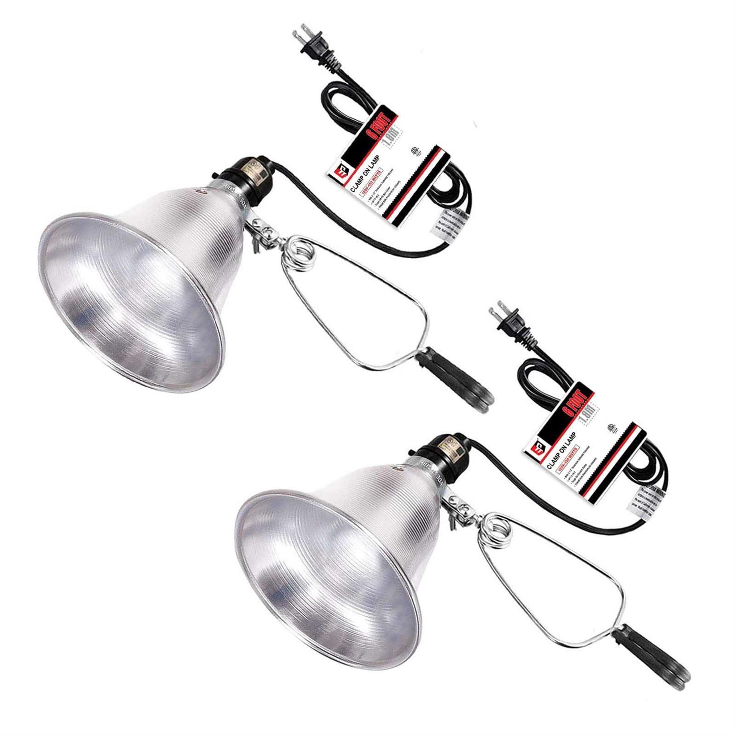 EP Clamp Lamp Light with Detachable 5.5 inch Aluminum Reflector, 60 Watt E26 Socket (No Bulb Included), 6 Foot 18/2 SPT-2 Cord Cord, 2 Pack