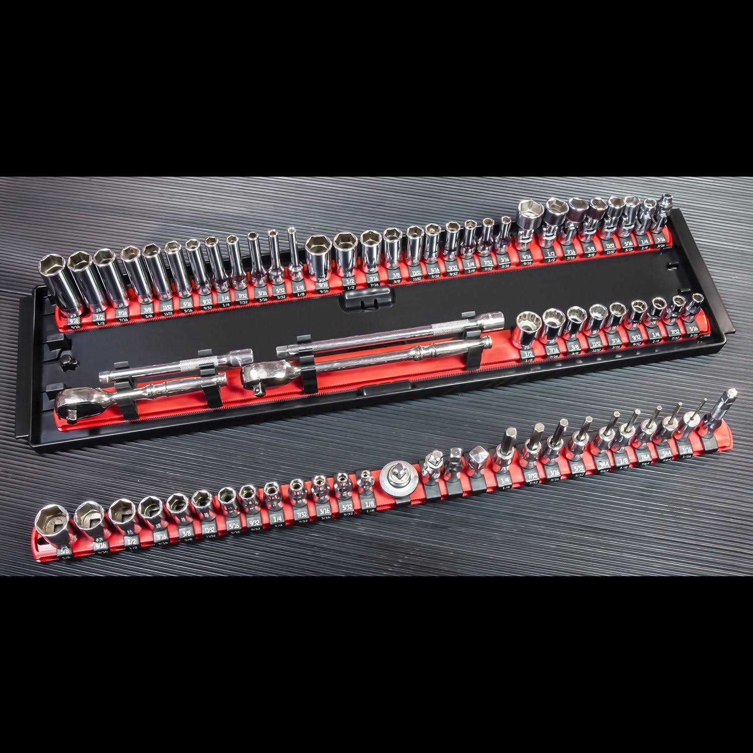 - Perfect for storage in the drawer, on the bench, or on the go; holds 57 sockets