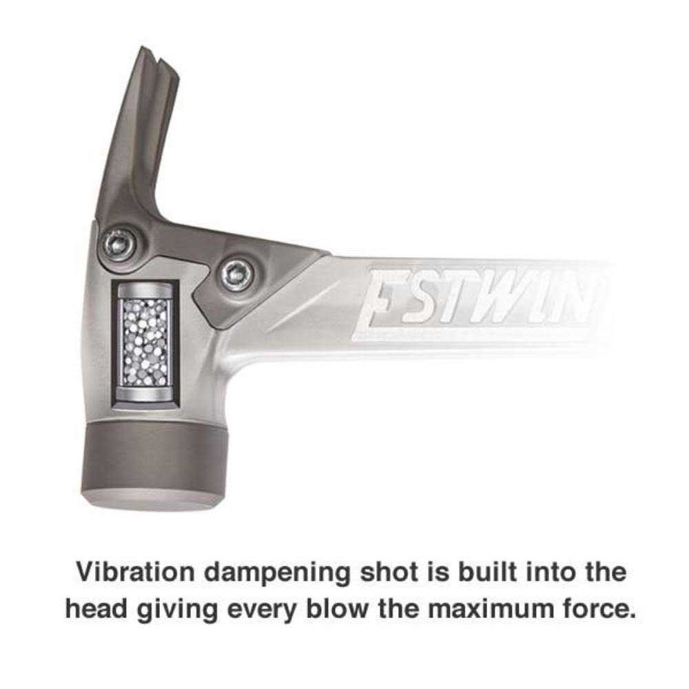 The Estwing AL-Pro is made from forged aircraft aluminum alloy, which is lighter than Titanium. Vibration dampening shot is built into the head giving every blow the maximum force. The PERMA-CAP steel head and interlocking steel claw give this hammer durable strength where it is most needed, and the reduced claw length provides increased leverage. There is a magnetic nail starter in the head. The AL-Pro delivers power in a lighter weight package, for the best performance in a hammer with our patented Shock Reduction Grip in blue.