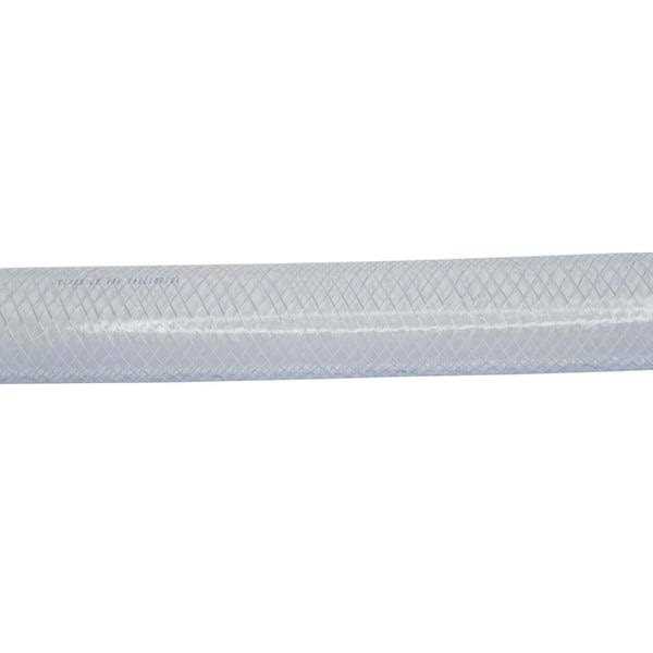 This braided vinyl tubing is made from polyester braided reinforced polyvinyl chloride and has the strength to withstand 4 times the working pressure of single wall PVC. The smooth, dense bore of the tubing maximizes flow rate and reduces sediment buildup. It has excellent resistance to acids, alkalis and many solvents, and handles a wide variety of chemicals, gases and liquids. It provides superior performance under severe operating conditions, and is excellent for hydraulic, pneumatic and vacuum lines. Color: Clear.