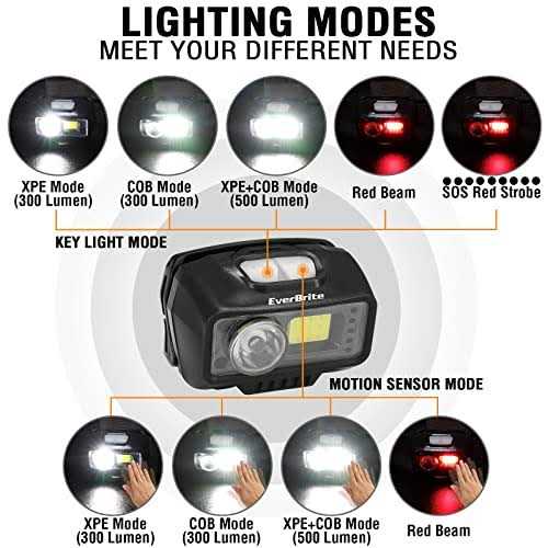 everbrite Rechargeable headlamp LED bright motion sensor head lamp flashlight