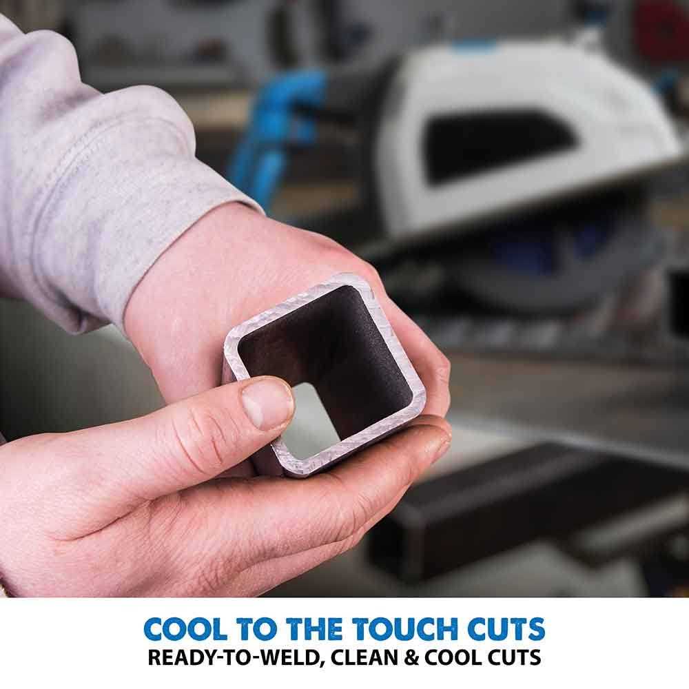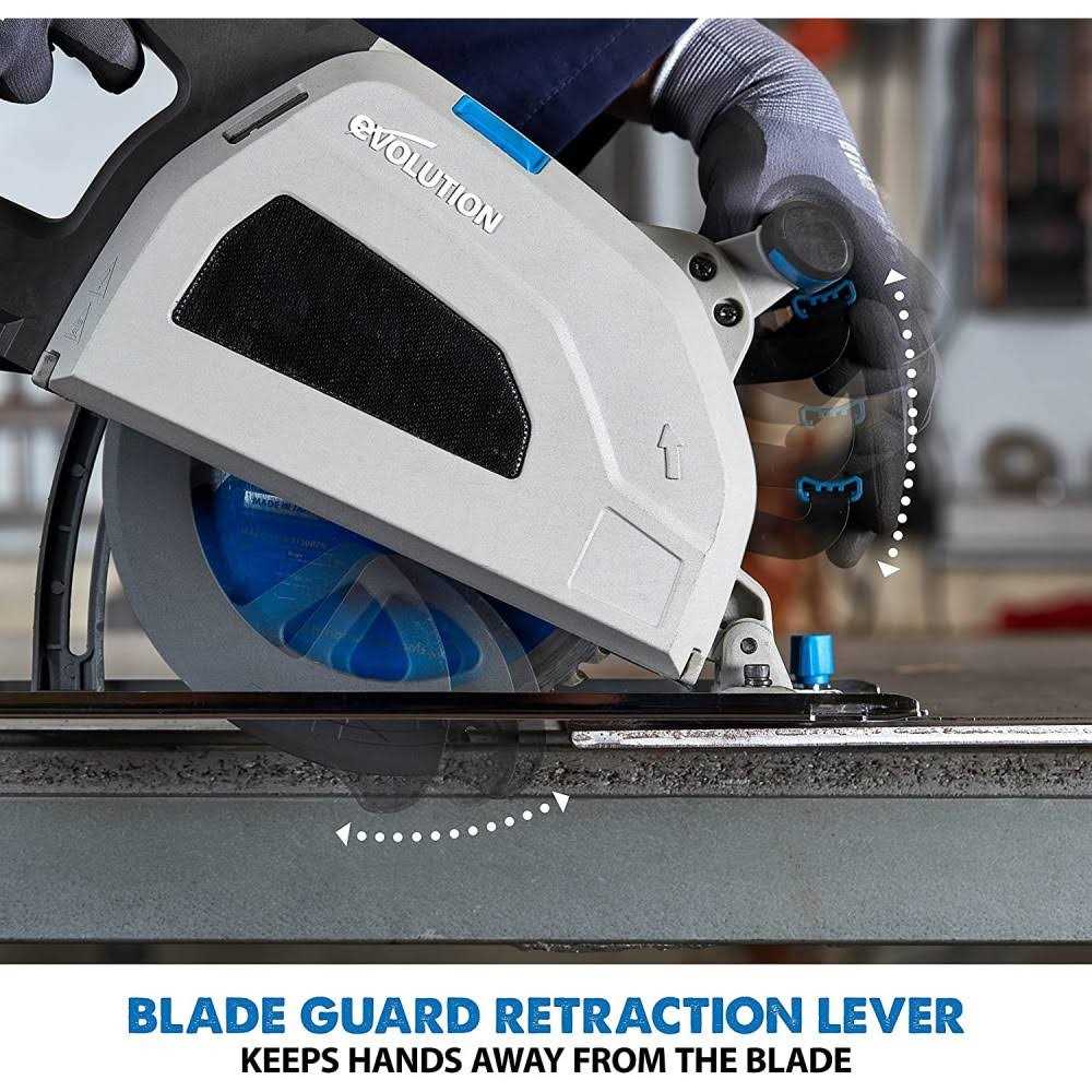 The Evolution S210CCS circular saw includes an LED worklight which illuminates the cutting path, resulting in a more accurate finish. Comes equipped with a 8-1/4 inch mild steel capable circular saw blade. Providing an instantly workable finish and produces virtually no heat, no burr, and no sparks. For added safety, the E-brake rapidly stops the blade in seconds For even greater straight cutting assistance, the S210CCS circular saw features a heavy duty parallel edge guide. The advanced overload protection signifies when the blade is dull by illuminating the LED indicator.