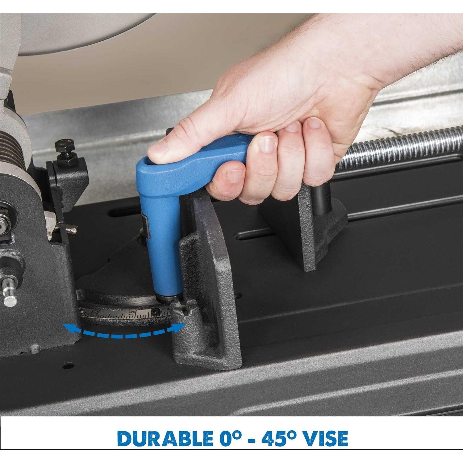 - Accurate and durable cast steel vice with 0° to 45° miter capacity