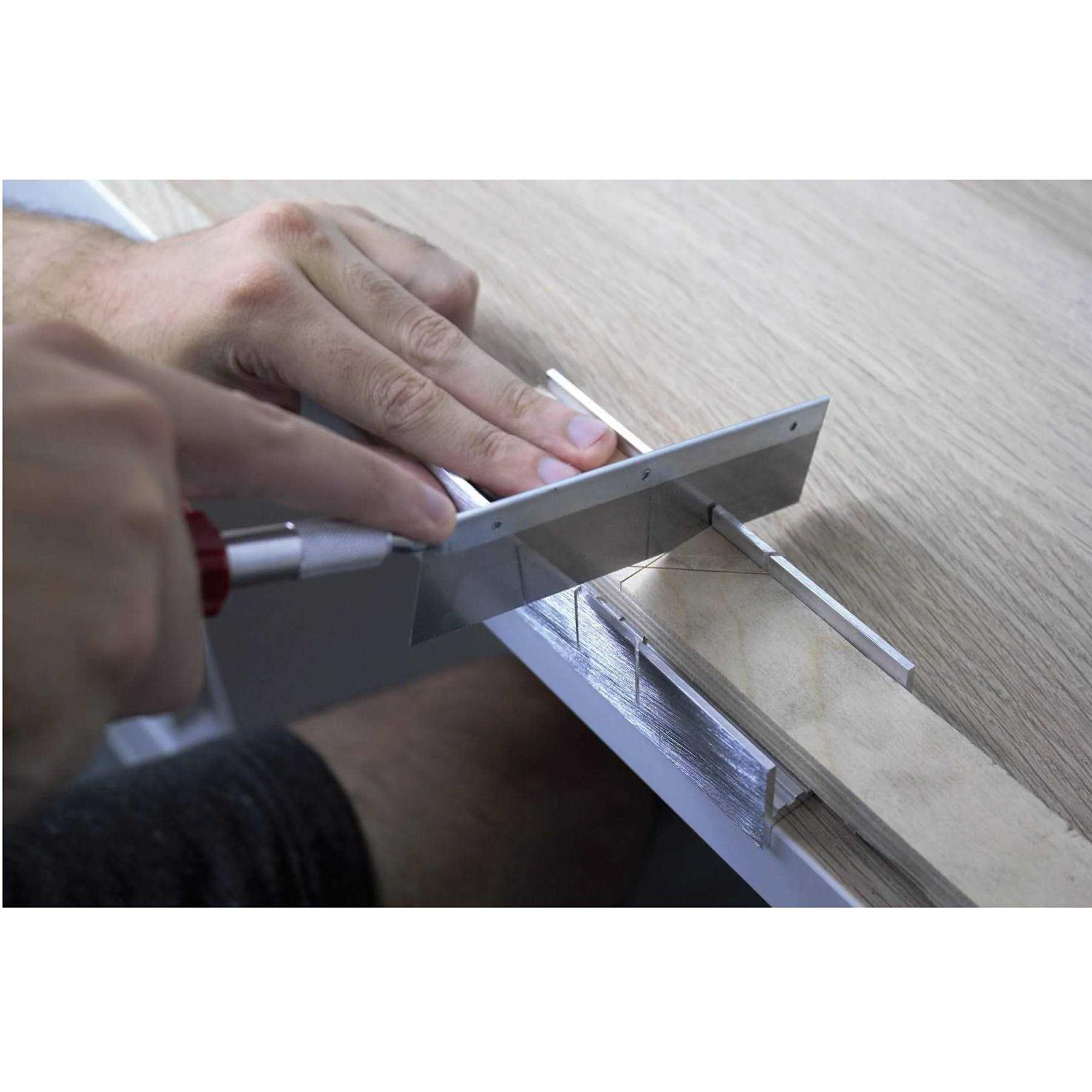 - The box is made of aluminium and has slots for both 45- and 90-degree cutting angles