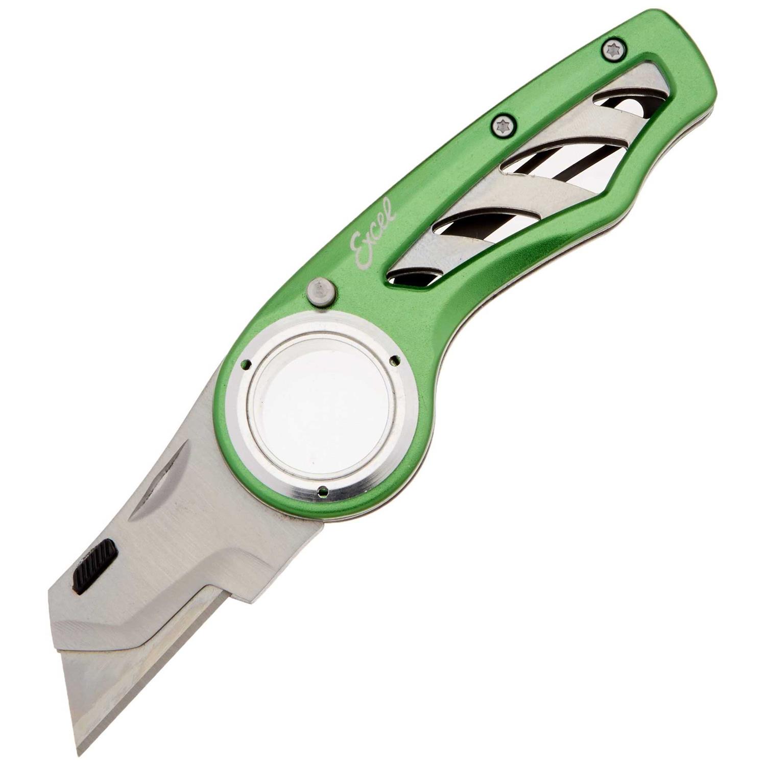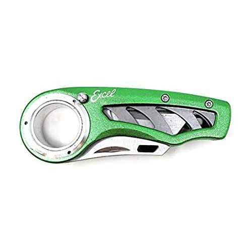 Excel K60 Revo Utility Pocket Knife is a lightweight box cutter knife with three locking positions and an open center ring that provides extra grip for safety and support. It has a one handed opening operation and quick blade changing mechanism allows you to quickly and reliably change out blades. The folding design fits perfectly into your pocket or easily clips to your belt. The set comes with a standard heavy duty two notch utility blade, with blade safety guard – handle fits most standard utility blades including Stanley. The knife is designed and built for cutting materials such as wood and sheetrock – for construction, remodeling, and carpentry.