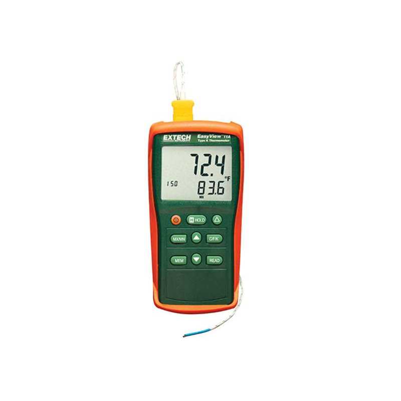 EXTEA11A Single Input Thermocouple Thermometer users can select Degree F or Degree C readings on large display. Feature Min. /Max. /Avg. storage, data hold and auto power-off. Accept any Type K thermocouple probe.