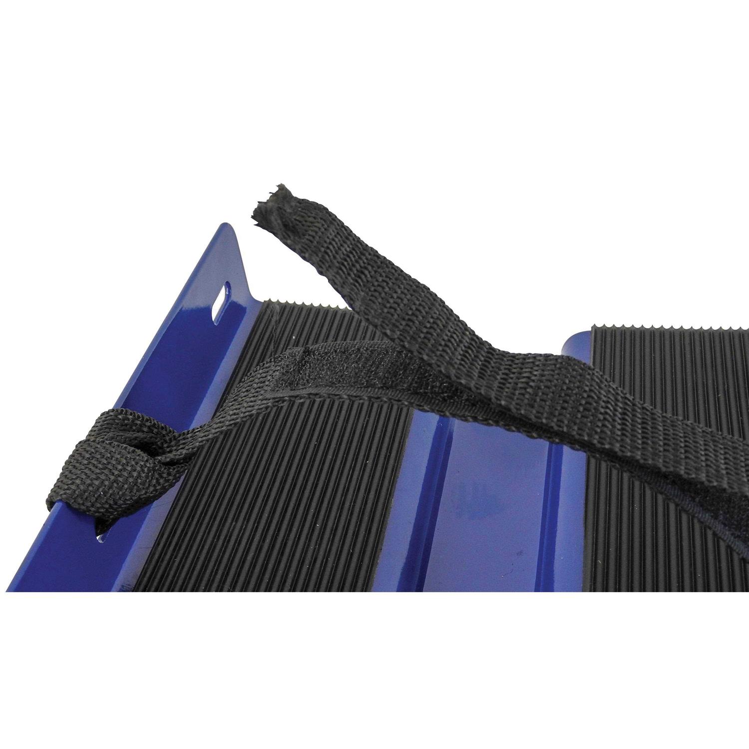 These economy dollies are perfect for smooth, flat surfaces, and maneuvering your sled in limited space. Painted steel dollies feature a 2.5 inch nylon wheel, rubber pads, and a single high-strength strap. Swivel casters allow easy movement and smooth turning. Dollies arrive pre-assembled and ready to use. Includes two ski dollies with strap and one track dolly.