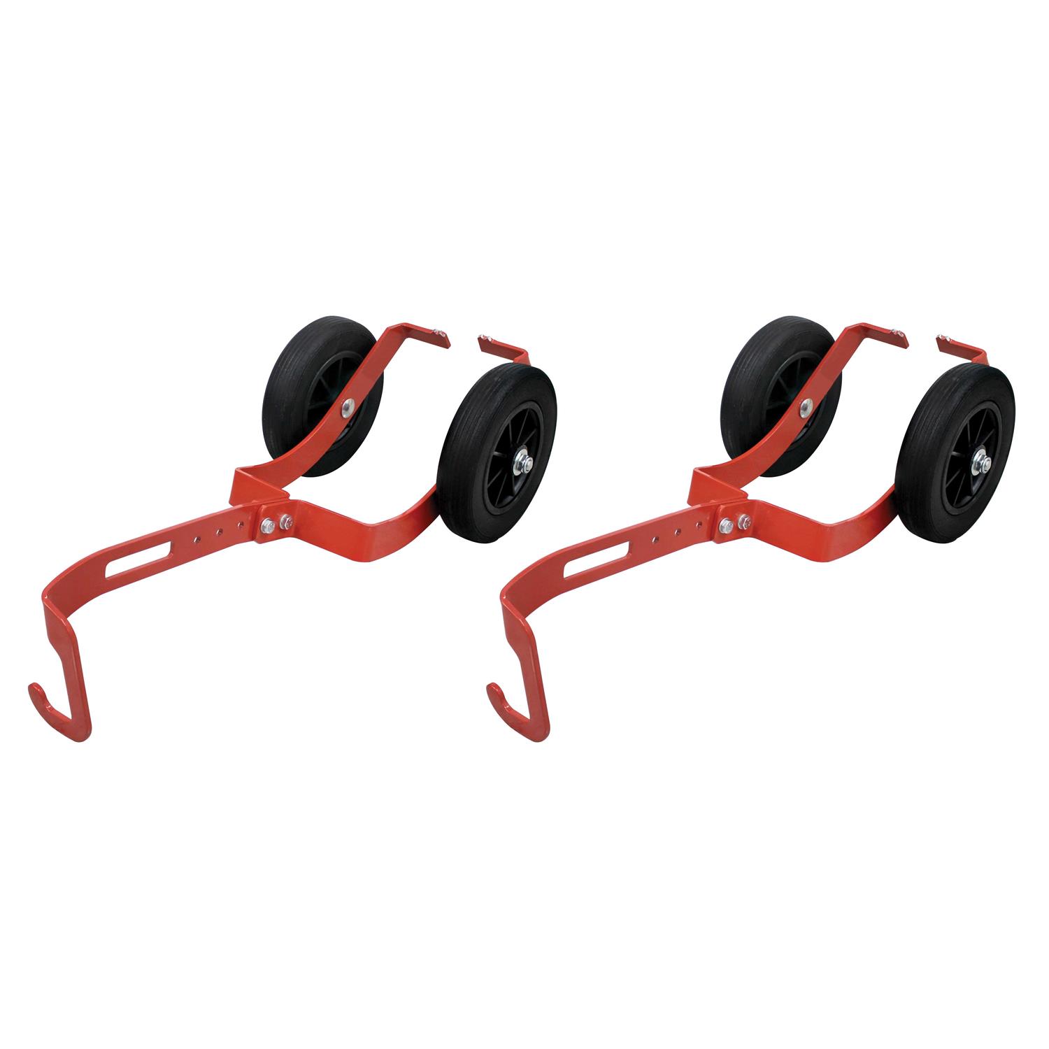 Protect your carbides and garage floors with the 5800.2015 Pro Series Snowmobile Dolly System from Extreme Max! The systems clever design slides underneath the snowmobiles skis and hooks into the ski loop, providing a set of drivable wheels to easily maneuver your sled around the garage, yard, and trailer. The oversized wheels easily handle traveling over grass and gravel surfaces without worry of wearing down the snowmobiles ski carbides or scratching the surface underneath the skis. Each dolly features a length adjustment to allow the perfect fit from spindle to ski loop. Pro Series Snowmobile Dollies are drivable up to 5 MPH and work with any modern snowmobile up to 650 pounds. Move your snowmobile around easily with the Extreme Max Pro Series Snowmobile Dolly System.
