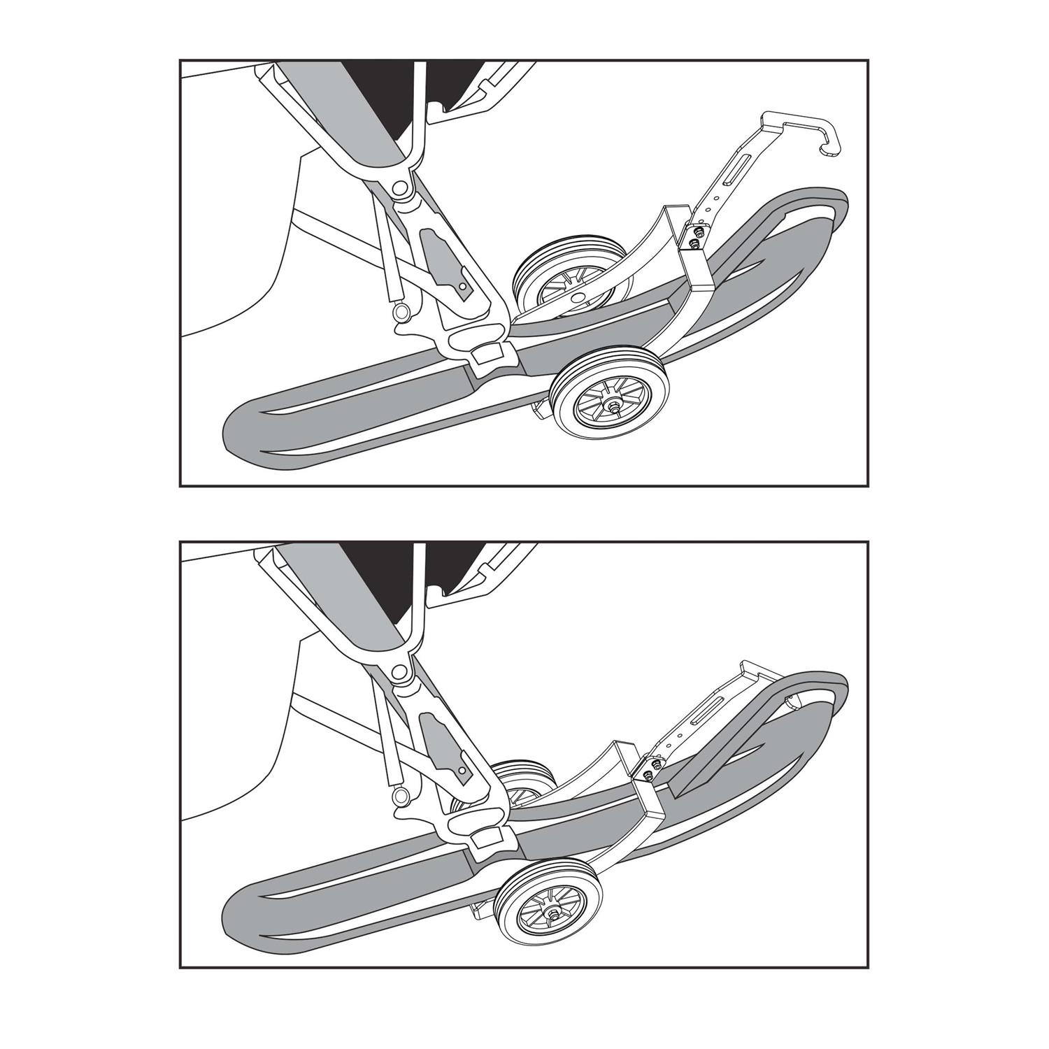 - Dolly system securely connects to the skis in just seconds, no tools required; Length adjustments during assembly allow for a custom fit to your sled.