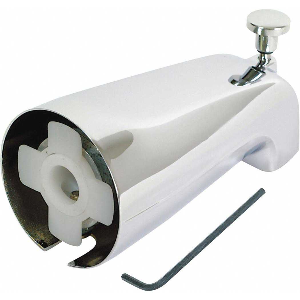 EZ-FLO 15089 Slide-On Diverter Spout Faucets, 5-3/8 inch Length, Chrome. This slide-on diverter spout features a universal design that is compatible with a variety of decorating styles. This spout is great for replacement and remodeling applications or new installations. The spout is built with zinc with a brushed nickel finish for durability and corrosion resistance. Size: 5 3/8 in.