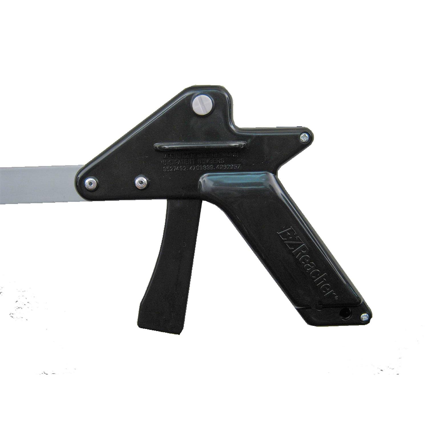 Rustproof stainless steel fingers Strong aluminum shaft Wide 4.5″ jaw opening for those quart size beer bottles Strong enough to pick-up an 8 pound brick Replaceable rubber cups (2) Reacher Pack of Original EZ Reacher Pick-Up Tool Rustproof stainless steel fingers and strong aluminum shaft. Black plastic pistol grip. The long-time choice of parks, DOT’s, recycling operations, volunteer organizations, or prison programs. Over one million sold since 1982.