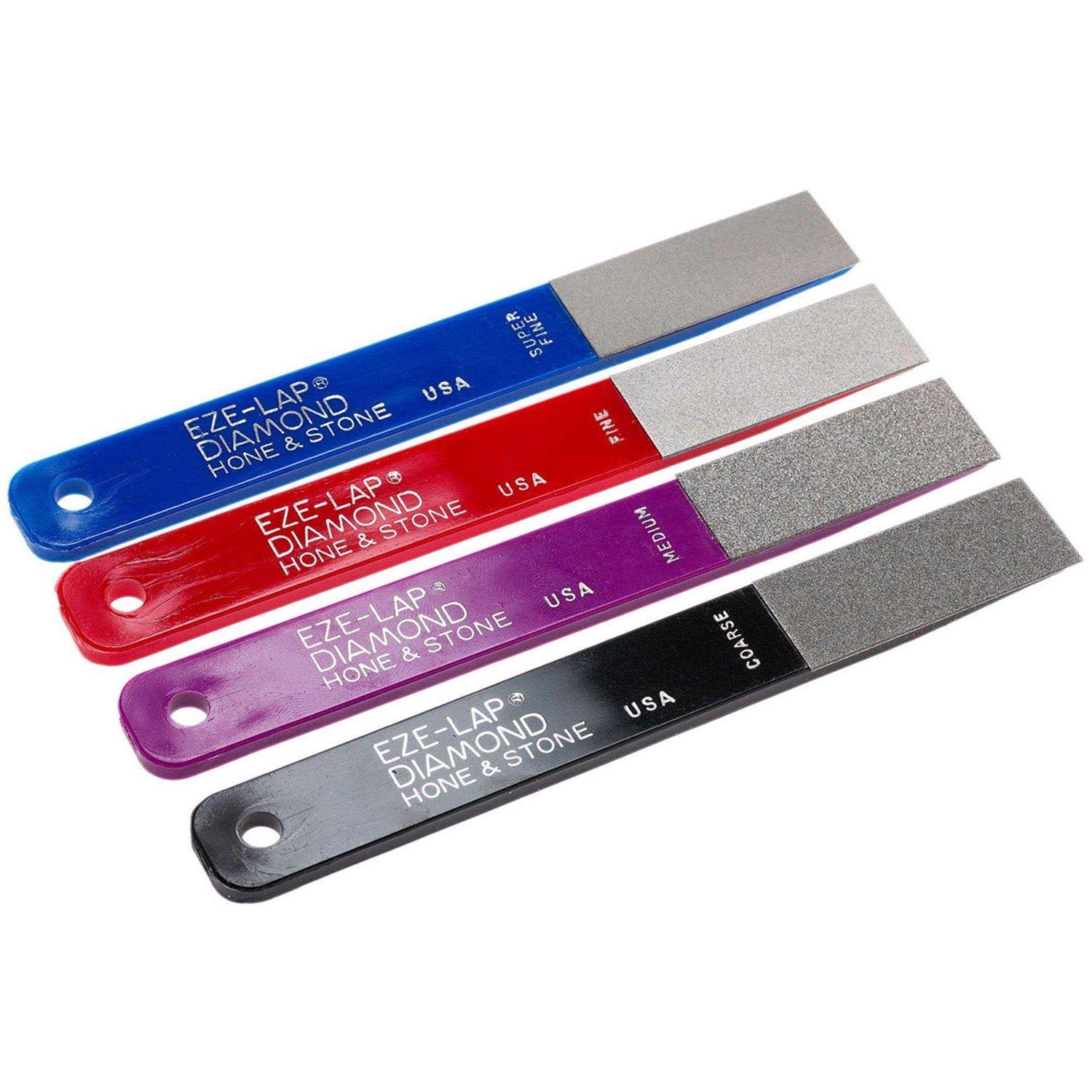 L PAK 4 Diamond Hone & StoneEZE-Lap Very effective in hard to get places, carbide saw blades, router bits, deburring. Many uses include hunting and fishing knives, axes, woodworking tools and carbides. 0.75″ x 2″ diamond pad on 6″ color coded plastic handle. Made in the USA.