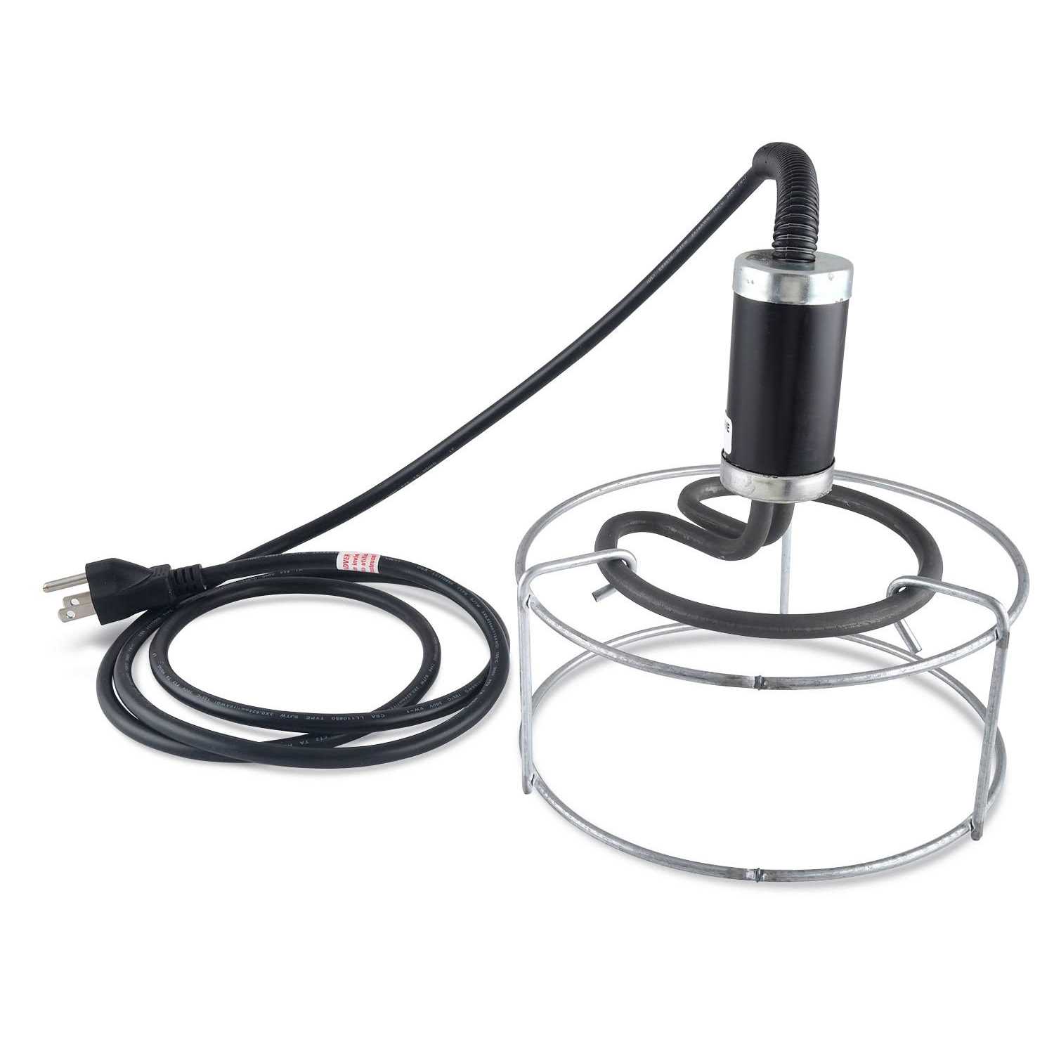 Bucket heater.14 Submergible bucket heater. – Designed to heat 5 gallons of water up to 110. Thermostatically controlled to regulate the water temperature between 85 and 110. Safe in plastic. – One year warranty. – Product Type: De-icer. – Overall Height – Top to Bottom: 8.5″. Overall Width – Side to Side: 7.5″. Overall Depth – Front to Back: 7.5″. Overall Product Weight: 2.5 lbs