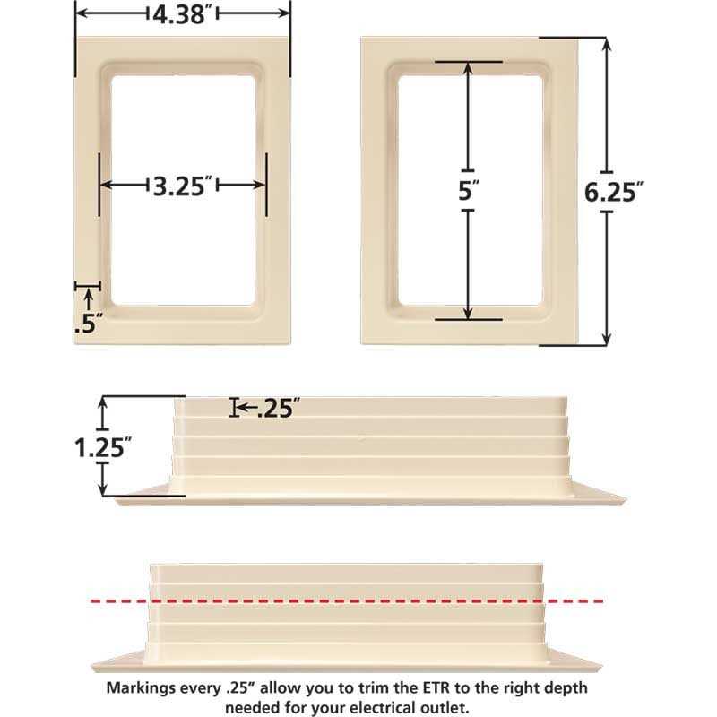 The Electric Trim Ring (ETR) is designed to clean up electrical cutouts in the back of cabinets. It comes in two sizes for single and double gang boxes and can be trimmed to specific return depths. ETRs are also paintable for your custom application.